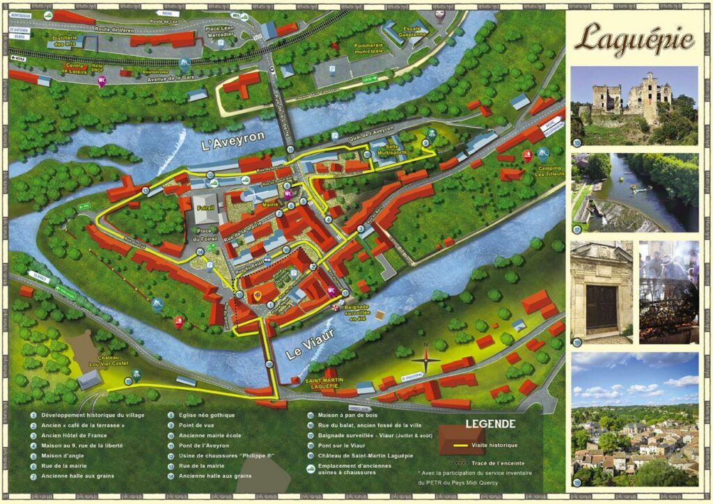 Retrouvez ici le plan de Laguépie. Un parcours de visite libre vous est proposé avec une petite description des lieux et monuments historiques du village.