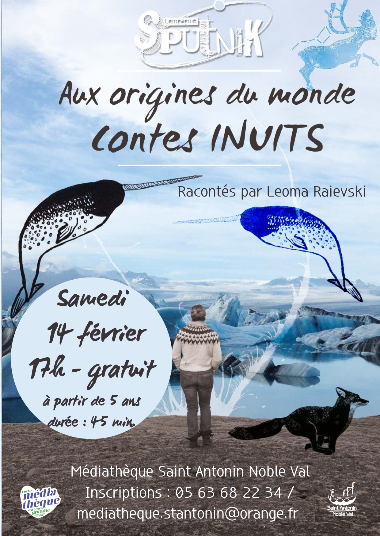 Le spectacle "Aux origines du monde, contes inuits" Le spectacle "Aux origines du monde, contes inuits" présente Leoma Raievski, née au Goéland, comédienne, conteuse, vous racontera l'amour qu'elle porte à son pays natal, en partageant sa culture et ses légendes.