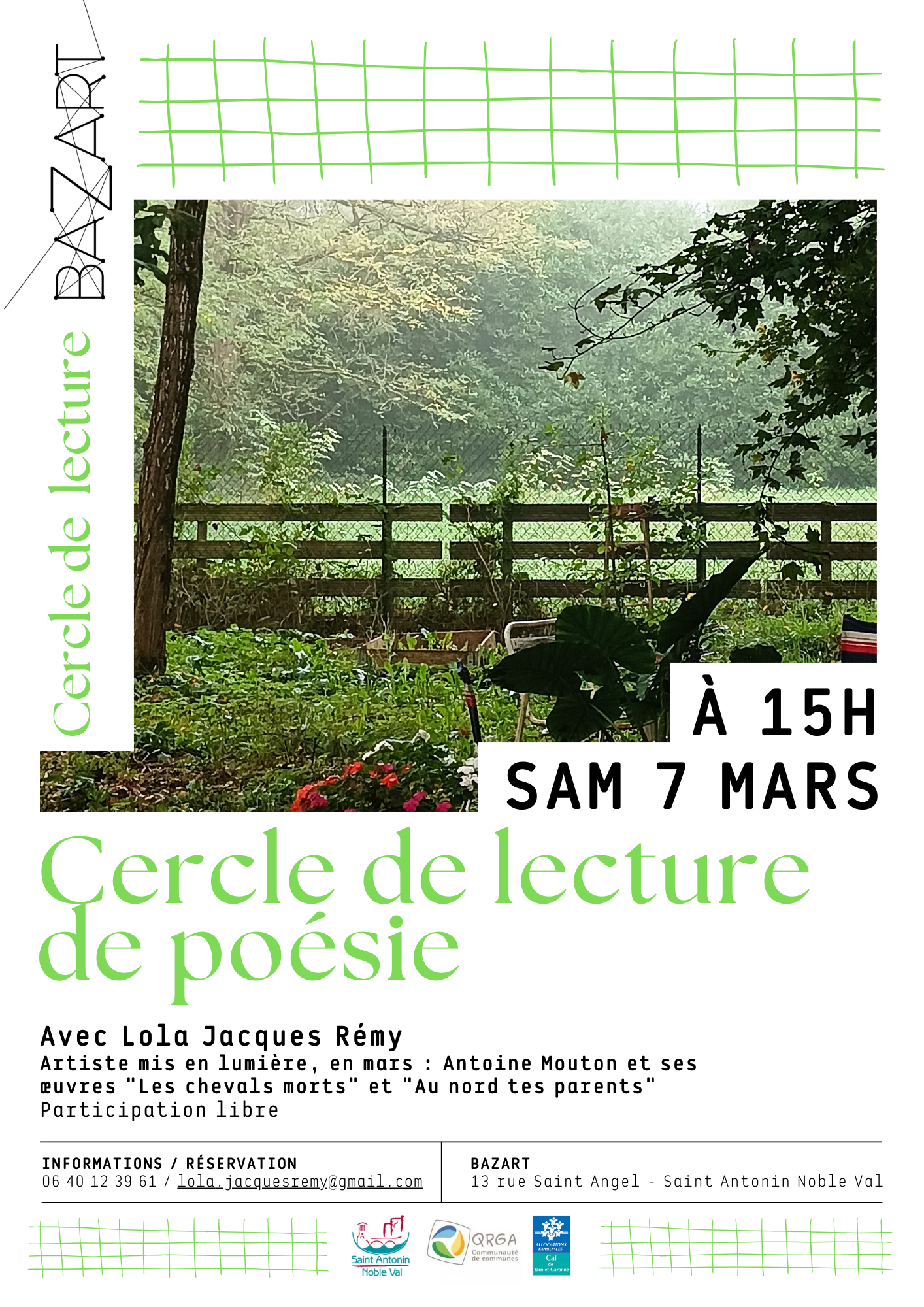 Un partage et un moment de lecture de textes poétiques qui nous parlent, en les lisant à voix haute, voici la nouvelle proposition de Lola. Un partage et un moment de lecture de textes poétiques qui nous parlent, en les lisant à voix haute, voici la nouvelle proposition de Lola. Chaque participant sera invité :