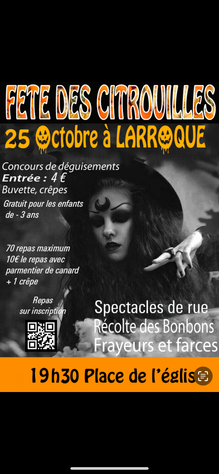 Plusieurs activités et restauration sur place au centre du village. Nous vous conseillons de réserver votre repas par le biais du QR code. Concours du meilleurs déguisements avec de nombreux lots à gagner : 16 entrées au Park TACTIK PAINTBALL 6 places au musée du jouet 4 places Escape Time, Place pour la descente de l'aveyron offerte par VARIATION, Gareojeux à Gaillac MUD Aventure Ferme du Petit Poucet La Ferme Auberge des Chênes . Nous tenons à remercier chaleureusement tous les sponsors pour l'intérêt qu'ils portent à notre événement. Le GRAND BAL DES SORCIÈRES clôturera la soirée.