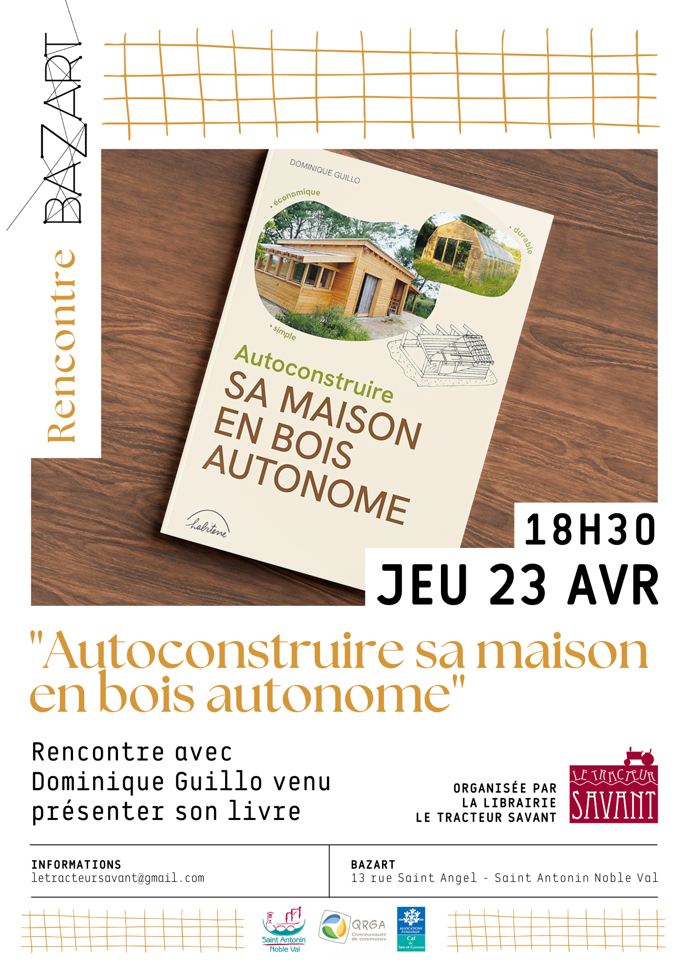 Rencontre avec Dominique Guillo venu présenter son livre "Autoconstruire sa maison en bois autonome" à Saint-Antonin-Noble-Val,