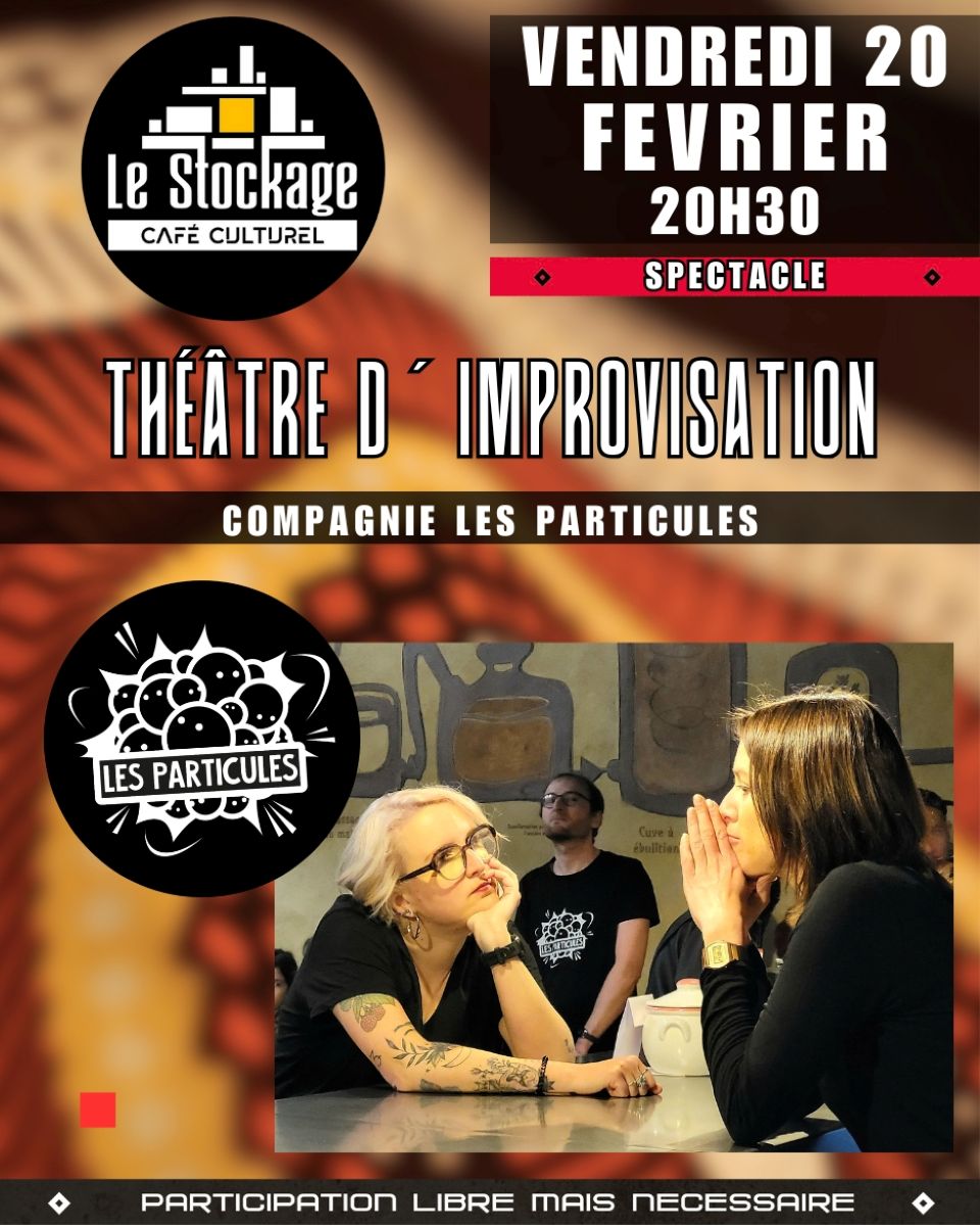Avec la Compagnie "Les Particules". Chaque improvisateur-ice deviendra tour à tour maître ou maîtresse de cérémonie et fera vivre à ses partenaires des défis scéniques aussi inattendus que réjouissants. Un cabaret original, plein d'audace et d'imprévu, pour célébrer le retour de la troupe au stockage. Une soirée pleine d'énergie et de rire. Chatouilleuses, curieuses, créatives et autogérées, « Les Particules » plongent dans l’inconnu à chaque représentation, où l'imagination est reine. L’improvisation, c’est l’art de l'instant, sans scénario, où tout est possible.