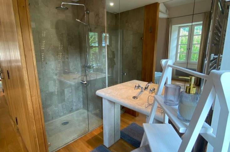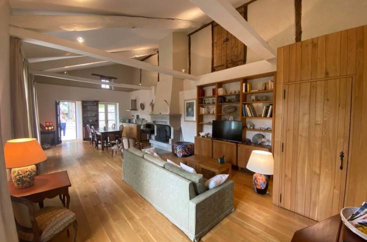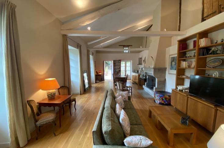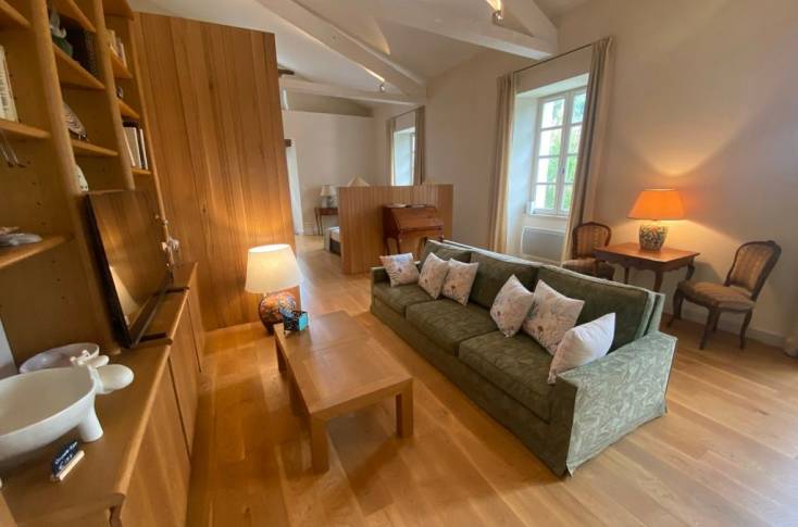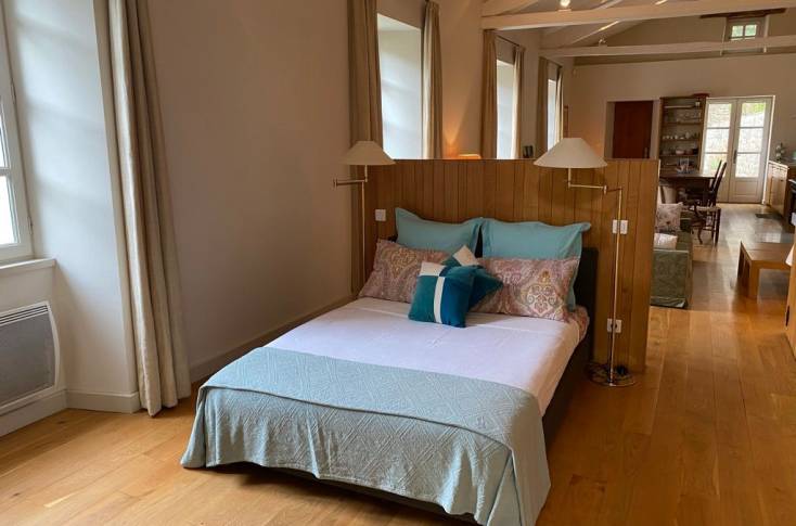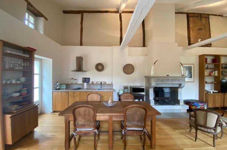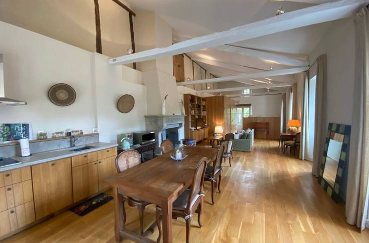 Le logement comprend sur le loft une première partie consacrée à la cuisine repas (éléments intégrés lave-vaisselle), ensuite une partie salon devant la cheminée (canapé, fauteuils, TV), et la dernière partie en chambre (1 lit 140), 1 salle d'eau et 1 wc indépendants. Dressing fermé.