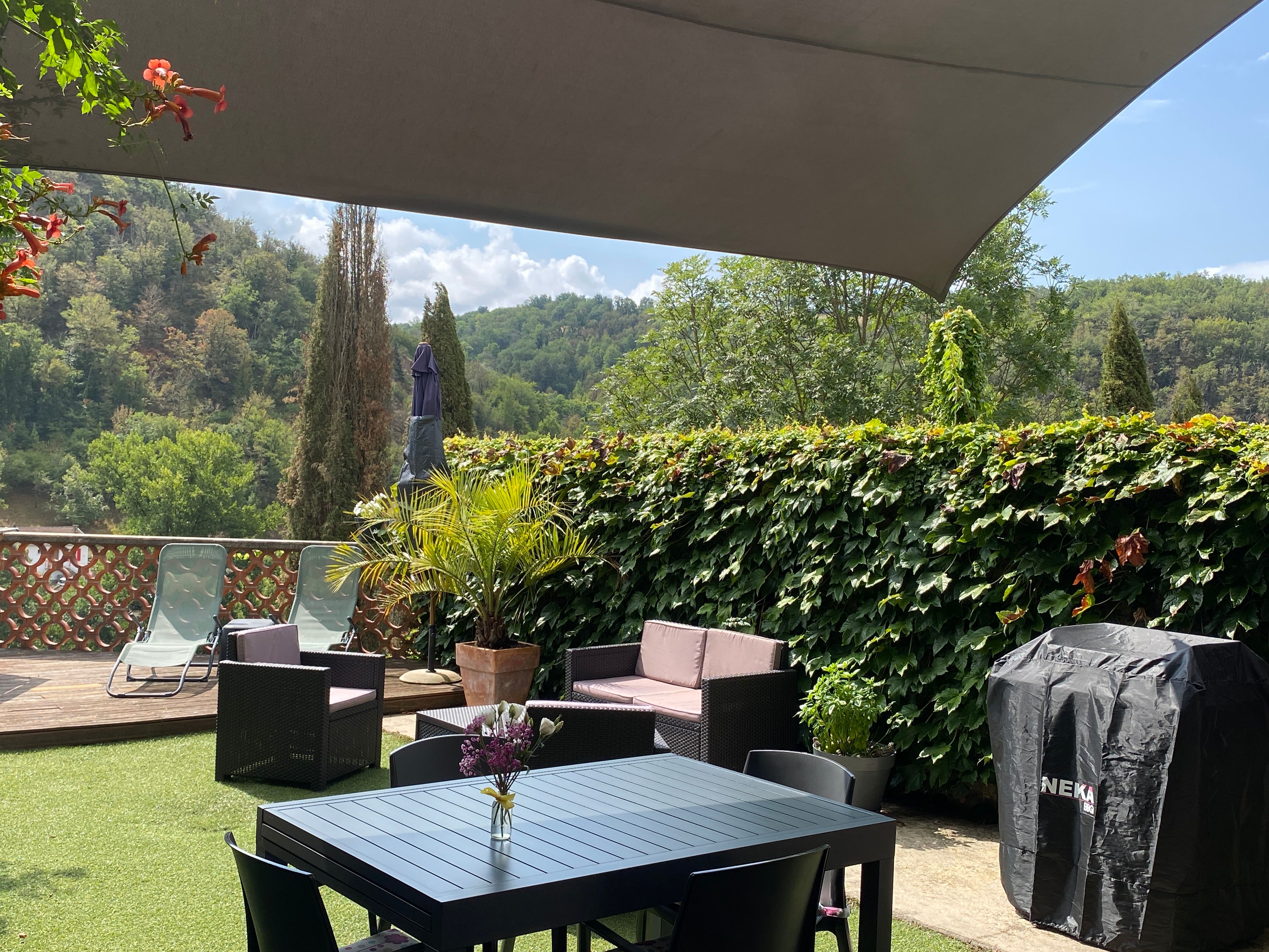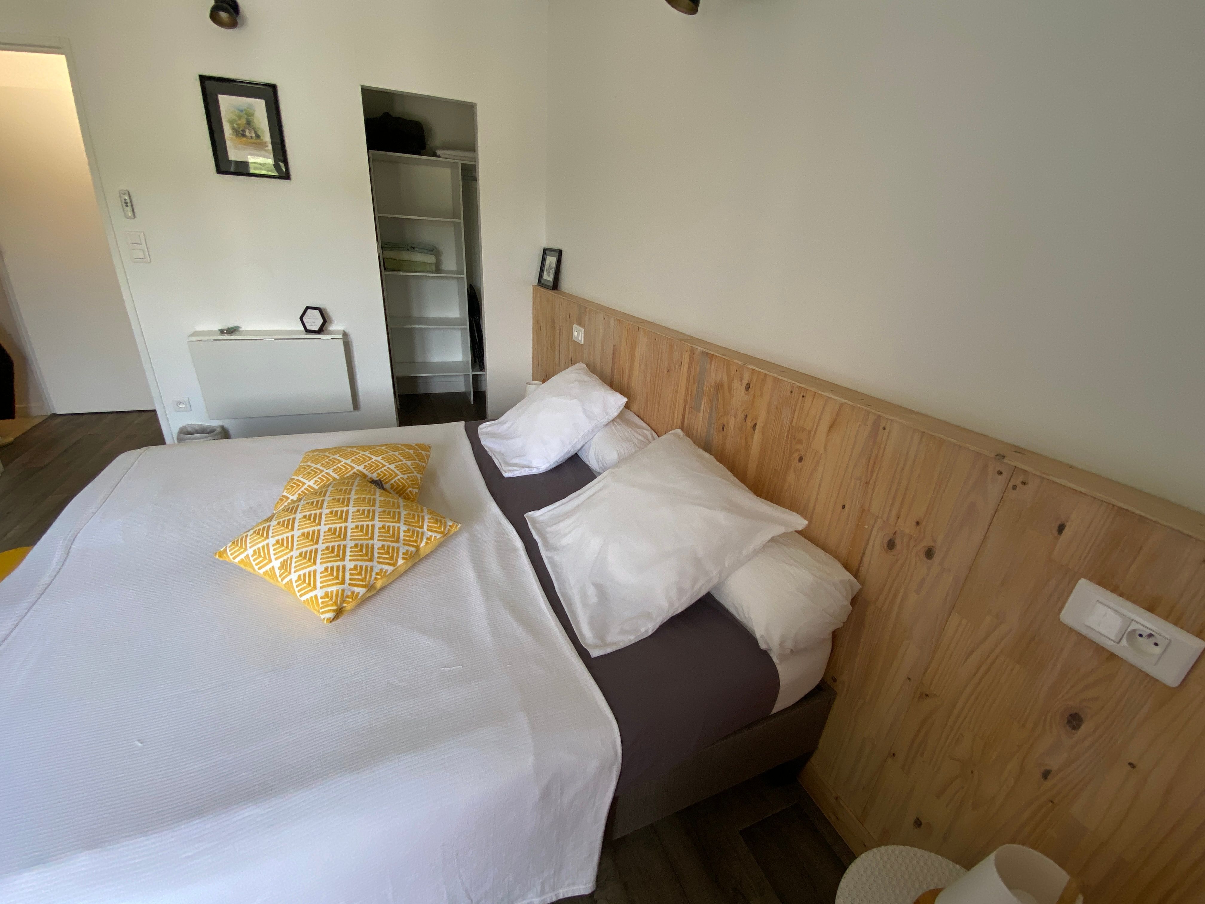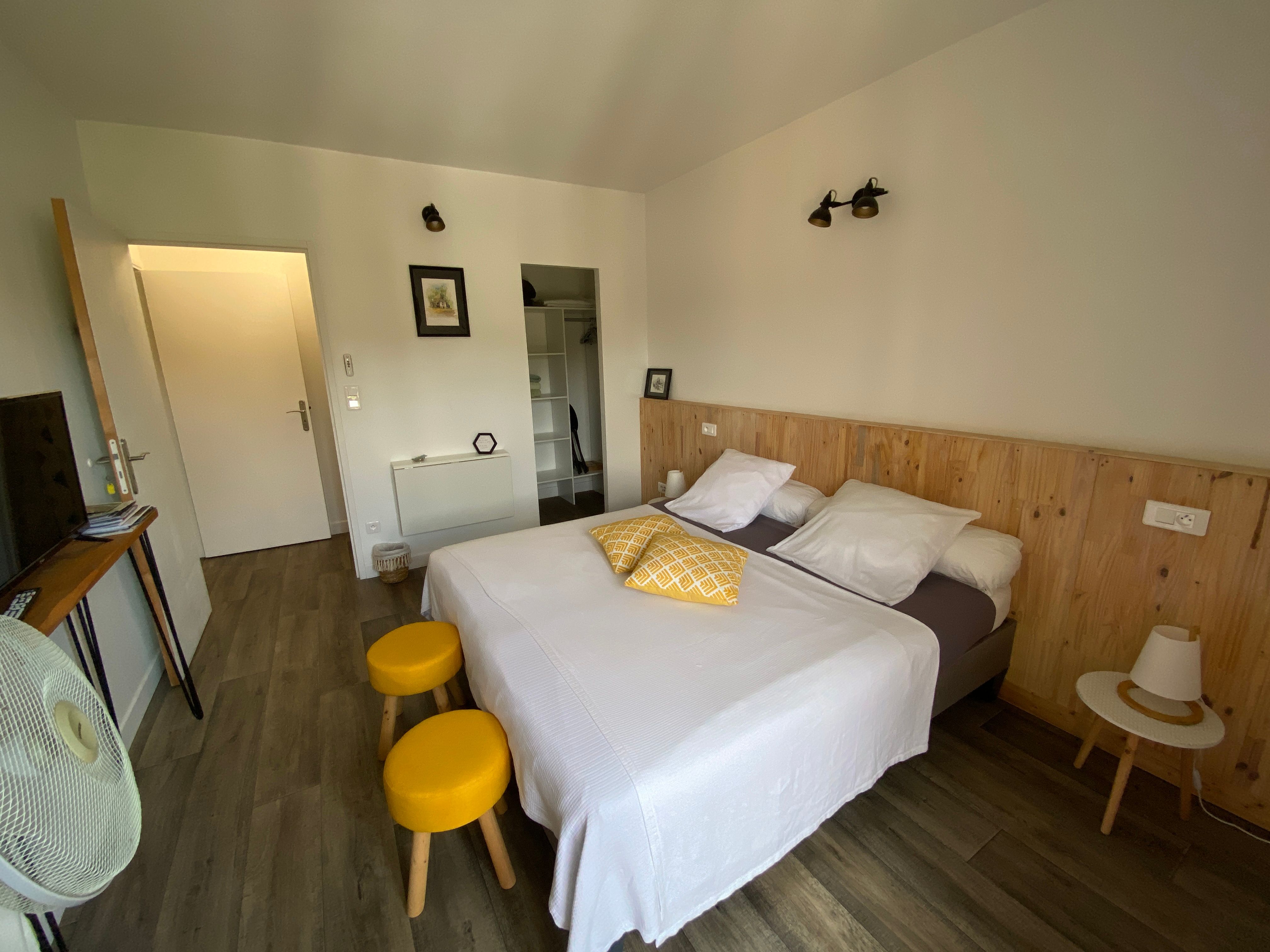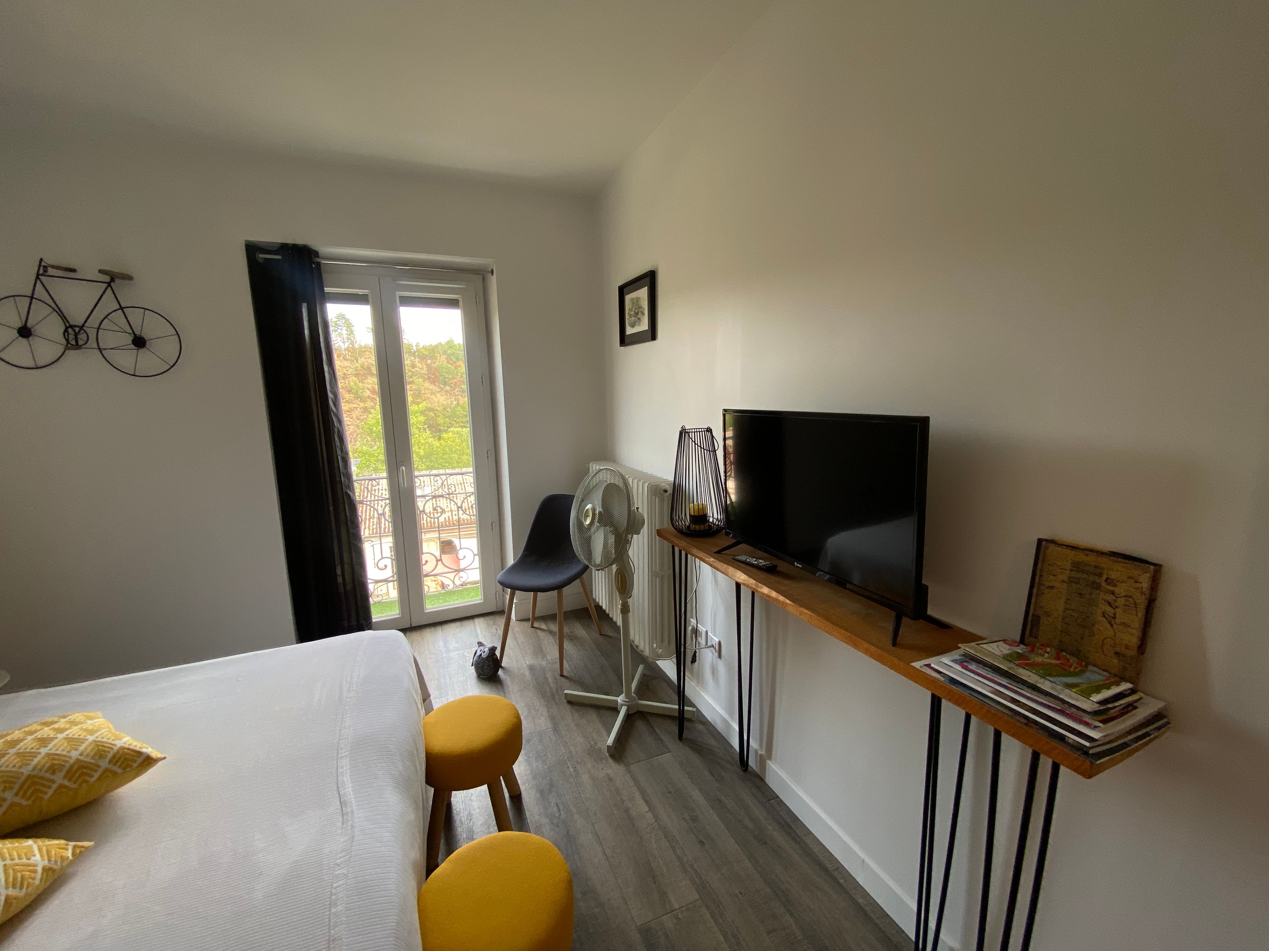 Les gorges de l'Aveyron sont célèbres et on y vient pour les activités sportives, culturelles mais aussi ces petits villages comme ici à Laguépie où se trouve une belle plage avec baignade surveillée au bord de cette rivière sauvage le "Viaur". Au 2ème étage, la chambre Aveyron dite familiale comprenant 2 chambre avec une salle d'eau accessible pour les deux chambres. La 1er chambre comprend : 1 lit 160, armoire, console avec TV, deux chevets, plateau de courtoisie. La 2ème chambre comprend 2 lits 0,90 rapprochés avec également un console avec TV, deux chevets, penderie et espace tisanerie (senseo, bouilloire, boisson fraiche ). La Salle d'eau (douche à l'italienne, 1 vasque avec meuble de rangement, sèche cheveux est commune aux deux chambres.