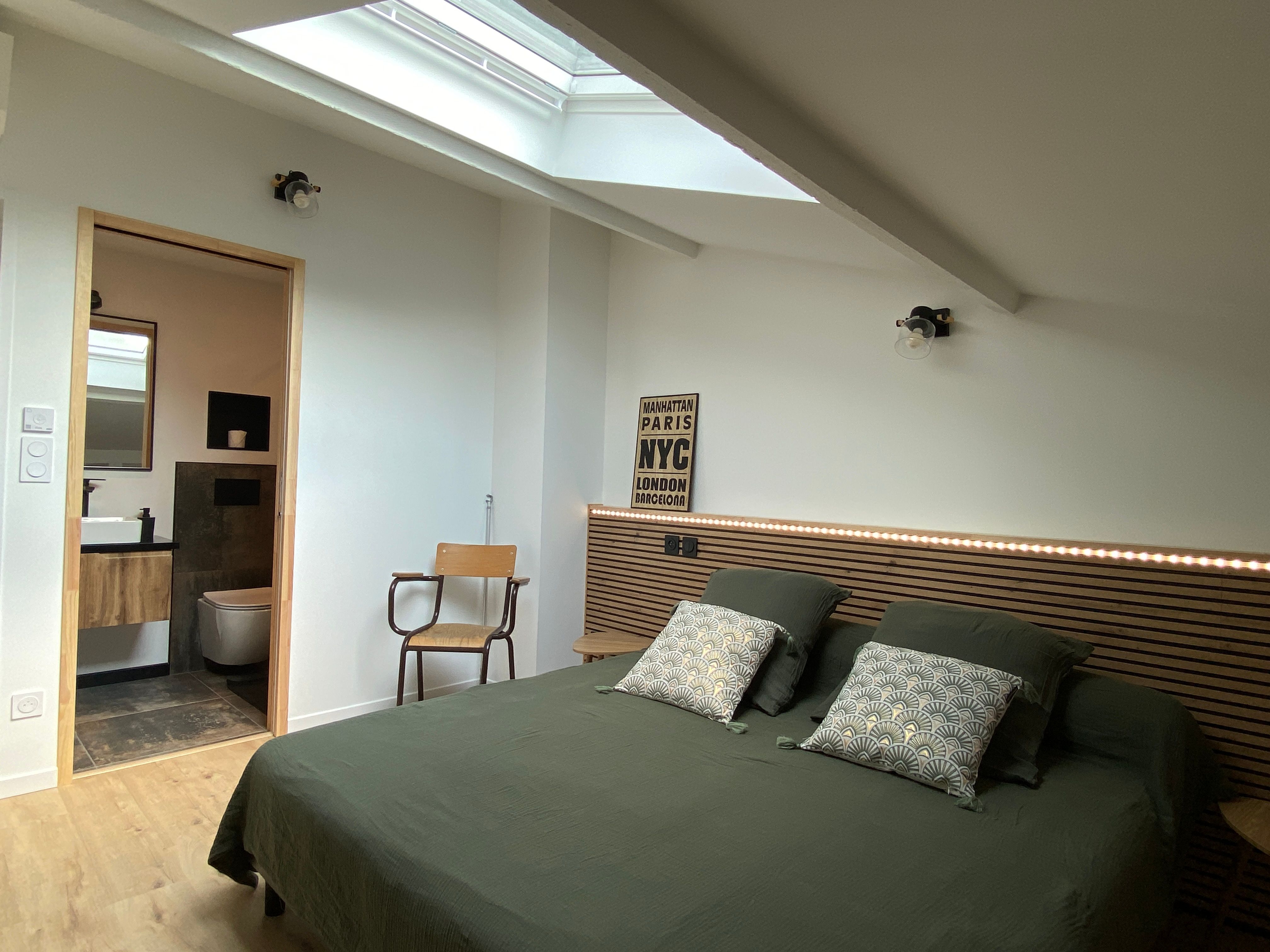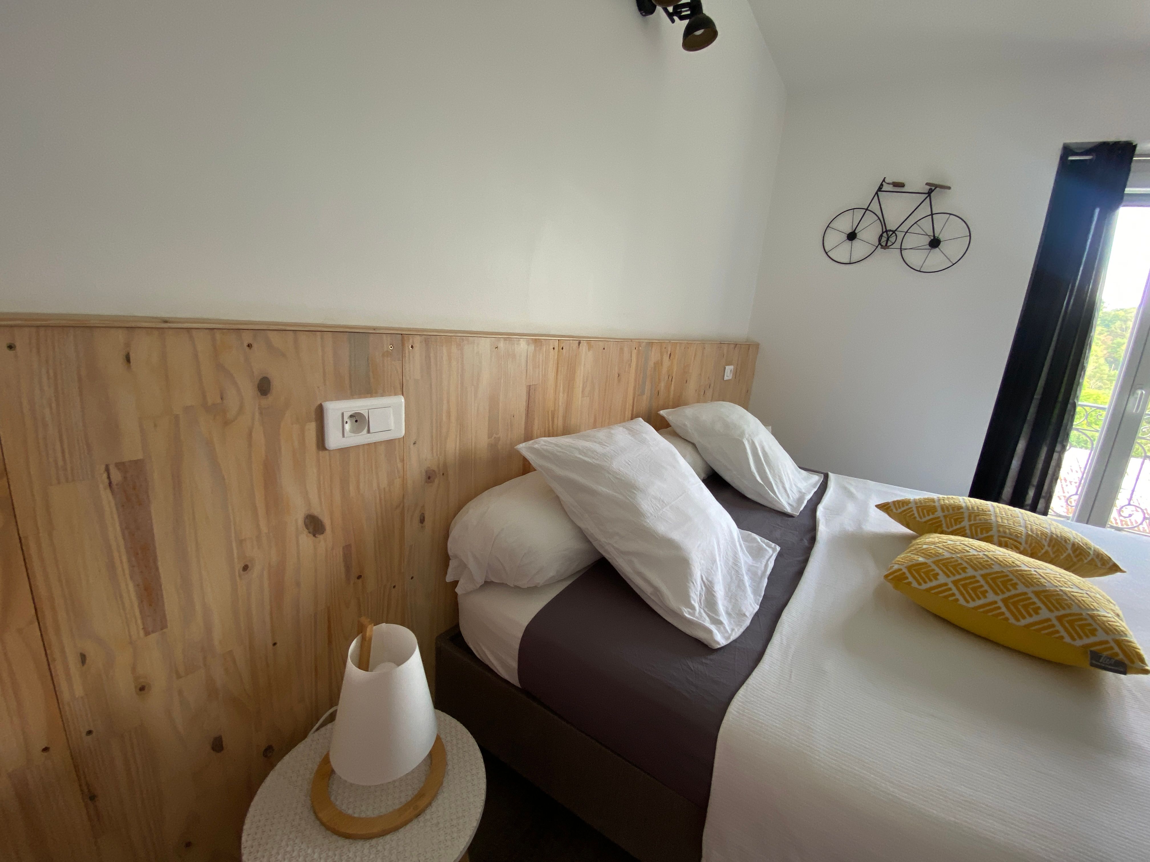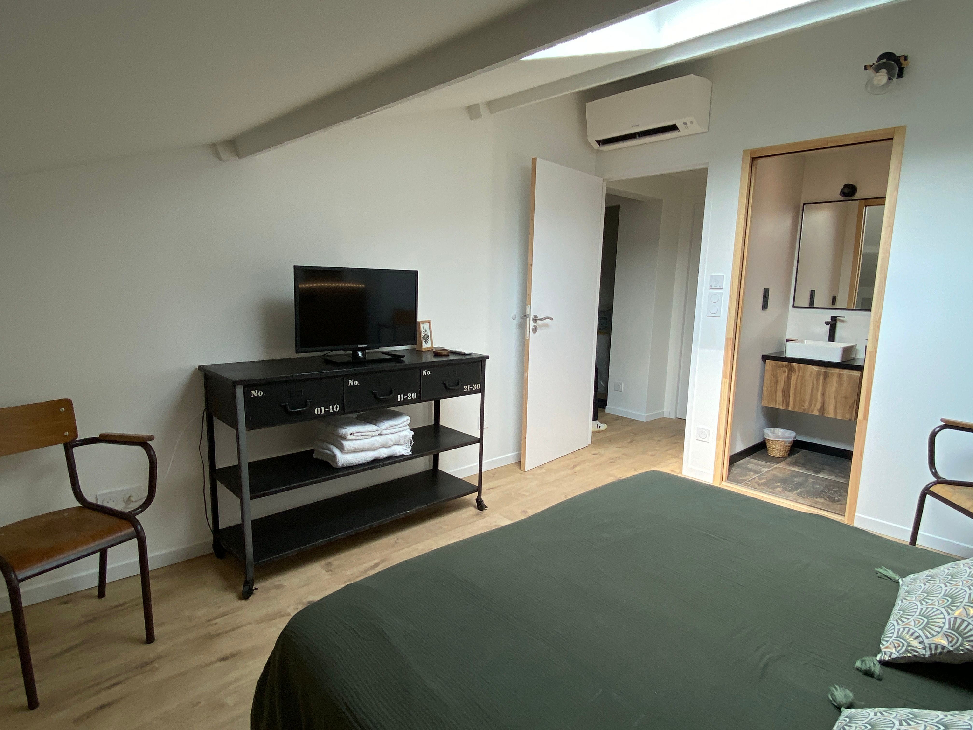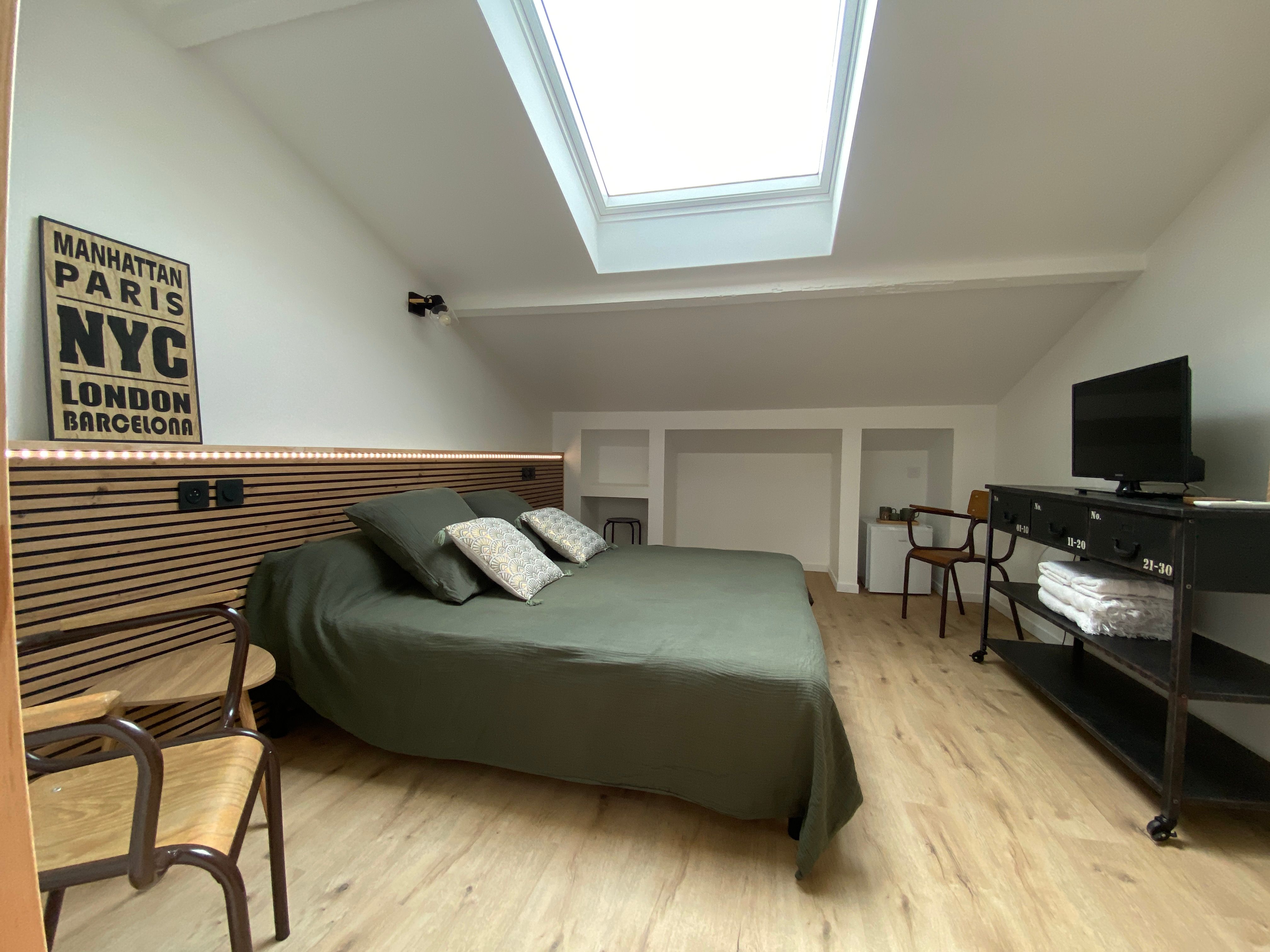 Au 3ème étage découvrez la toute nouvelle chambre Viaur dans un esprit vintage industriel avec 2 lits 0,90 rapprochés, meuble avec TV, plateau de courtoisie avec petit réfrigérateur, climatisation. Salle d'eau privative à cette chambre avec sèche cheveux, sèche serviette, douche lavabo et wc.