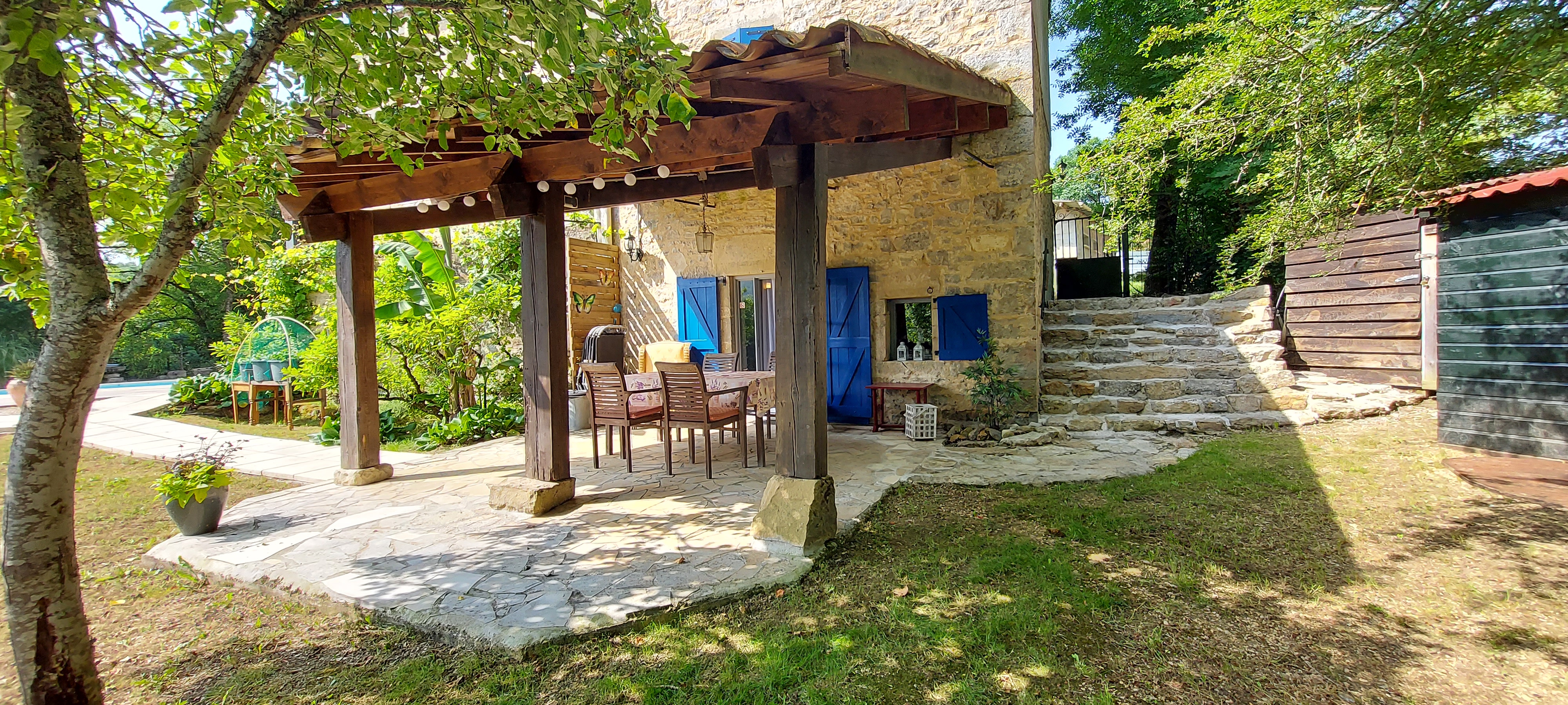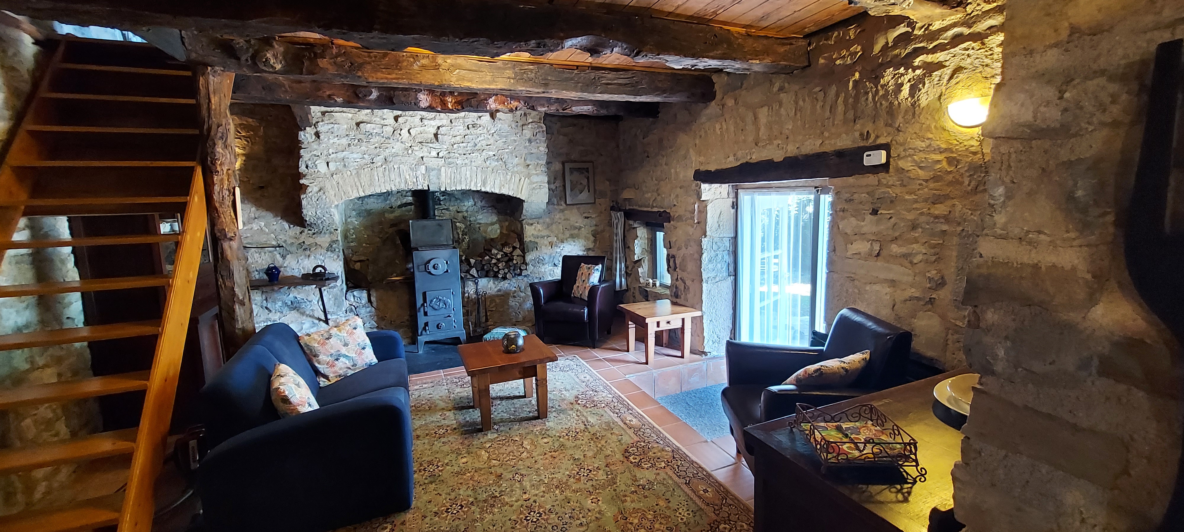 Le gîte est accessible par une entrée privée avec escalier en pierre et quelques marches, ce qui le rend malheureusement inadapté aux personnes à mobilité réduite.