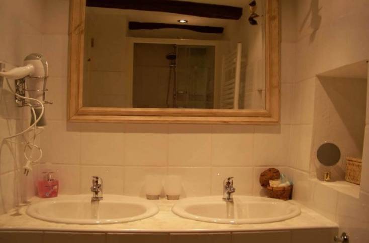 Dans la chambre il y a une atmosphère légère avec des couleurs chaudes. Un lit double confortable et spacieux (2,00 m x 1,60 m) qui est divisible en deux lits simples. Dans la chambre vous avez accès à des toilettes séparées et une salle d’eau moderne. La salle d’eau à un lavabo double, douche à l’italienne et sèche serviette.