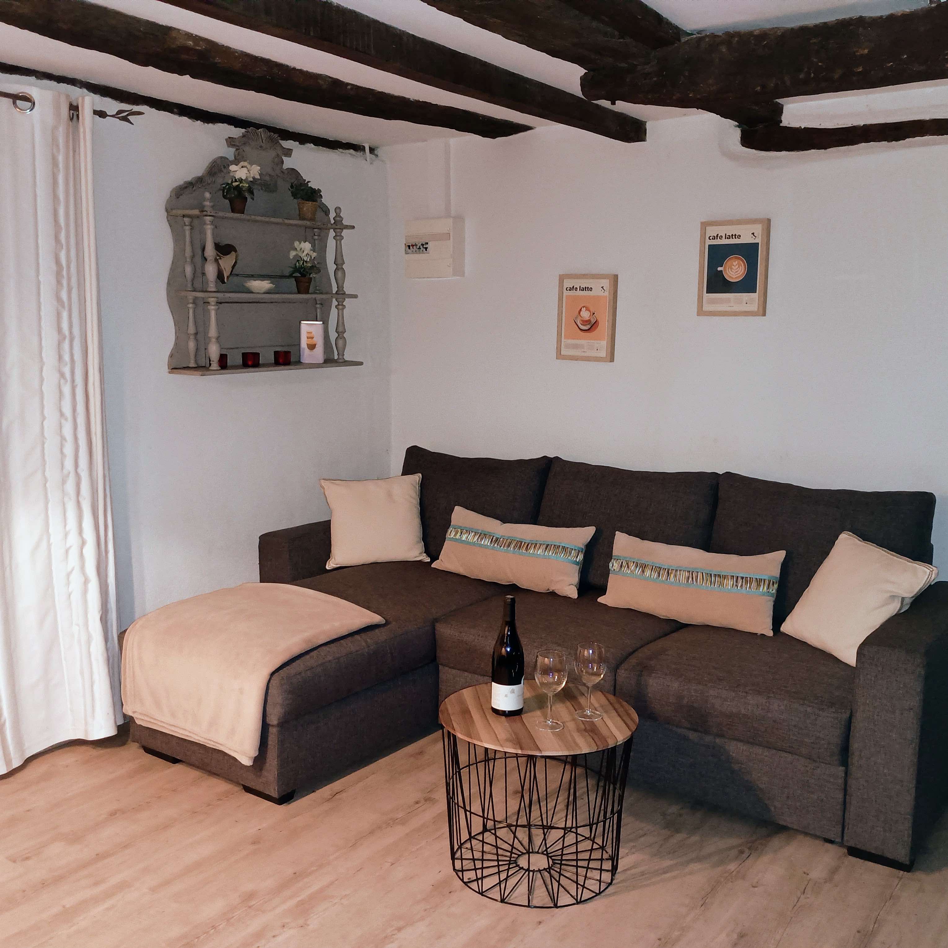 Le gîte "Le Capuccino" vous permettra de passer un séjour unique à deux à 5mn du village médiéval de Saint-Antonin-Noble-Val. Le gîte confortable et douillet est décoré autour du thème ''Cappuccino'' et se situe au rez-de-chaussée du bâtiment principal qui est une ancienne ferme quercinoise rénovée. La cuisine américaine est entièrement équipée, four, réfrigérateur, plaque à gaz 4 feux, cafetière, bouilloire, grille pain et comporte un coin repas avec une table et 4 chaises. Dans le salon vous trouverez un grand canapé et sa méridienne.