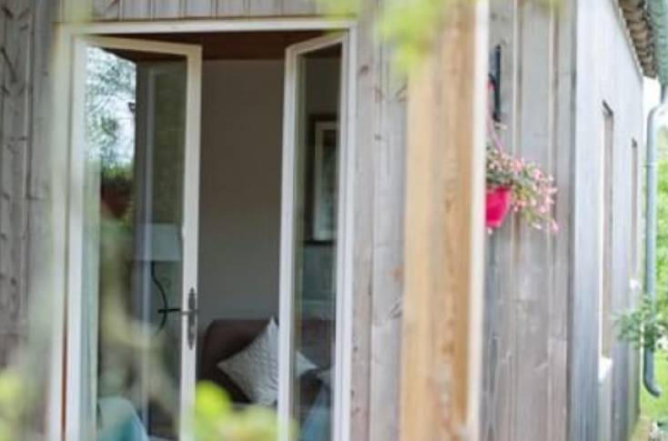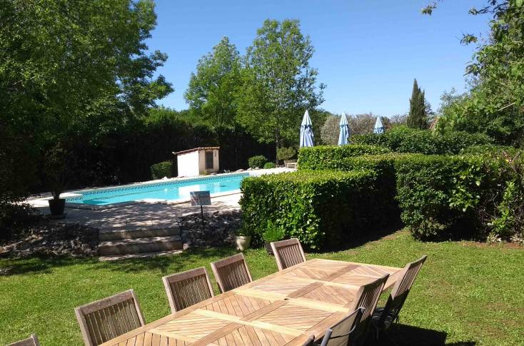 Vous pouvez profiter de la terrasse commune et de la piscine. La maisonnette a sa propre terrasse et son salon de jardin.