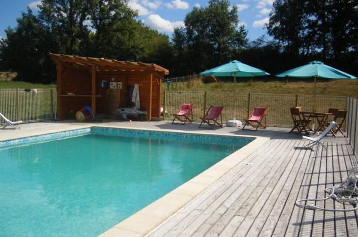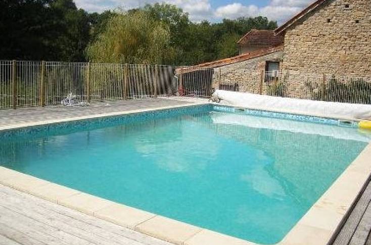 La piscine est clôturée et mesure 6 x 10 m, de 70 cm à 1.50 m.