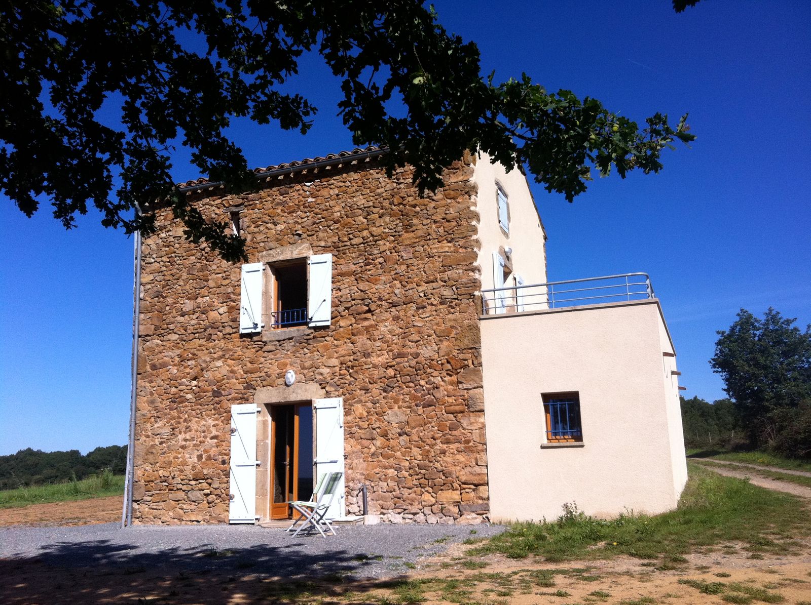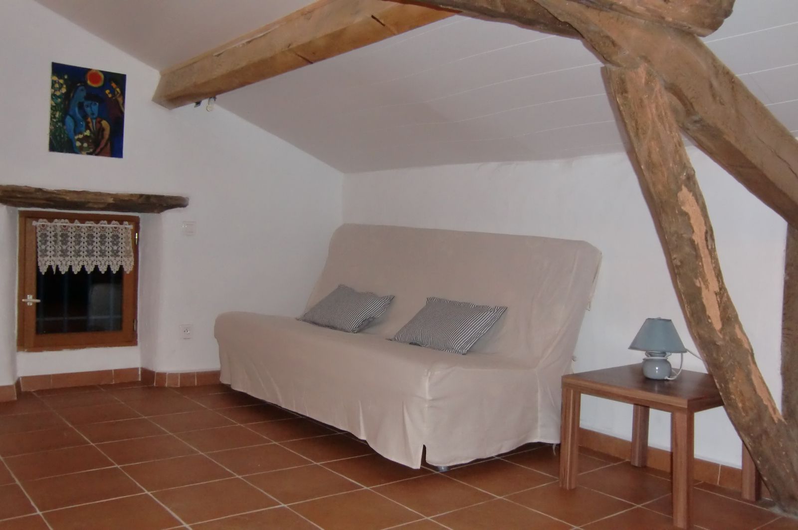 A la campagne, gîte très indépendant. Le logement comprend au rez-de-chaussée : 1 séjour (canapé clic-clac, TV), 1 cuisine (MO, LV), 1 salle d'eau avec wc. Au 1er étage : 1 ch (1 lit 140, 1 lit enfant) donnant sur une terrasse (1 table, 2 chaises), 1 WC. Au 2ème étage : 1 ch mansardée (1 canapé-lit en 140). Salon de jardin, barbecue. Grand terrain autour du gîte. En option : location draps et linge de toilette, ménage.