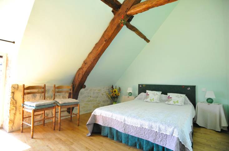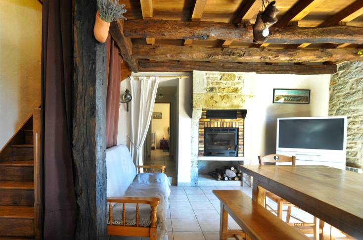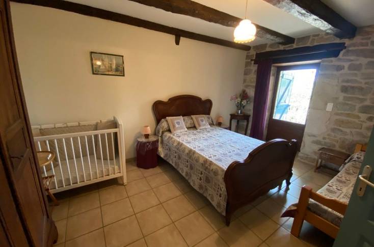 Clos par une murette de pierres sèches ce gîte respire cette "mise au vert" tant recherchée. Vos hôtes vous apprendront à aimer cette maison où meubles et objets racontent en douceur de vraies histoires. Au rdc : 1 séjour (2 fauteuils) et coin-cuisine (MO,LV), 1 ch (1 lit 140 + 1 lit 90), salle d'eau. (LL dans cellier), WC. Au 1er étage : 1 salon donnant sur balcon avec escalier en pierre, 1 ch (1 lit140), 1 ch. (2 lits 90), salle de bain, WC. Garage. Jardin privé non clos (450 m2). Terrasse privée. Salon de jardin et barbecue. Tél téléséjour.