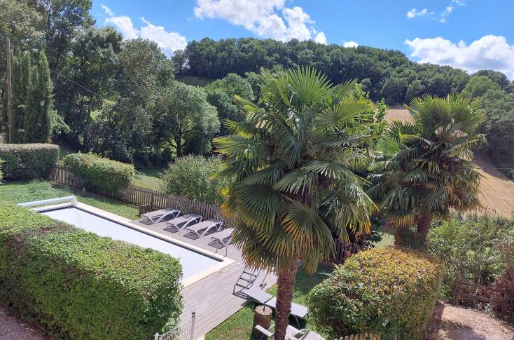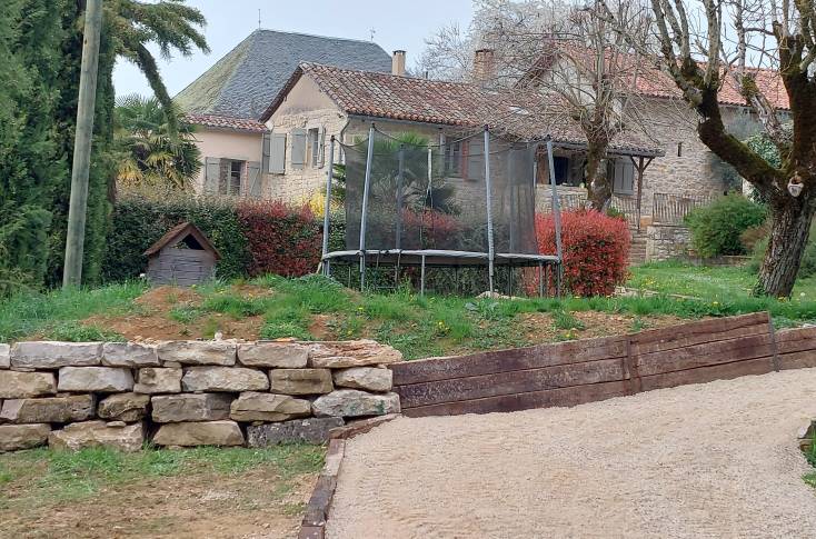 Ambiance champêtre : champs, verdure, bois entourent cette maison quercynoise du 18ème siècle. Vos journées seront rythmées au son de la nature avec de belles randonnées en perspective toute l'année. A partir du printemps, la piscine est très agréable. Le logement est accessible après quelques marches. Sur votre droite une belle terrasse avec salon de jardin et barbecue, salon d'été, sur votre gauche, 4 marches et on entre dans le gîte. A l'intérieur : séjour (canapé, fauteuils, TV) avec coin-cuisine équipée (four, four à micro-ondes, lave-vaisselle, réfrigérateur, congélateur,...) , 1 chambre (1 lit 140), 1 chambre (1 lit 140), 1 chambre (2 lits 90), 1 salle de bain (baignoire d'angle), 1 WC.