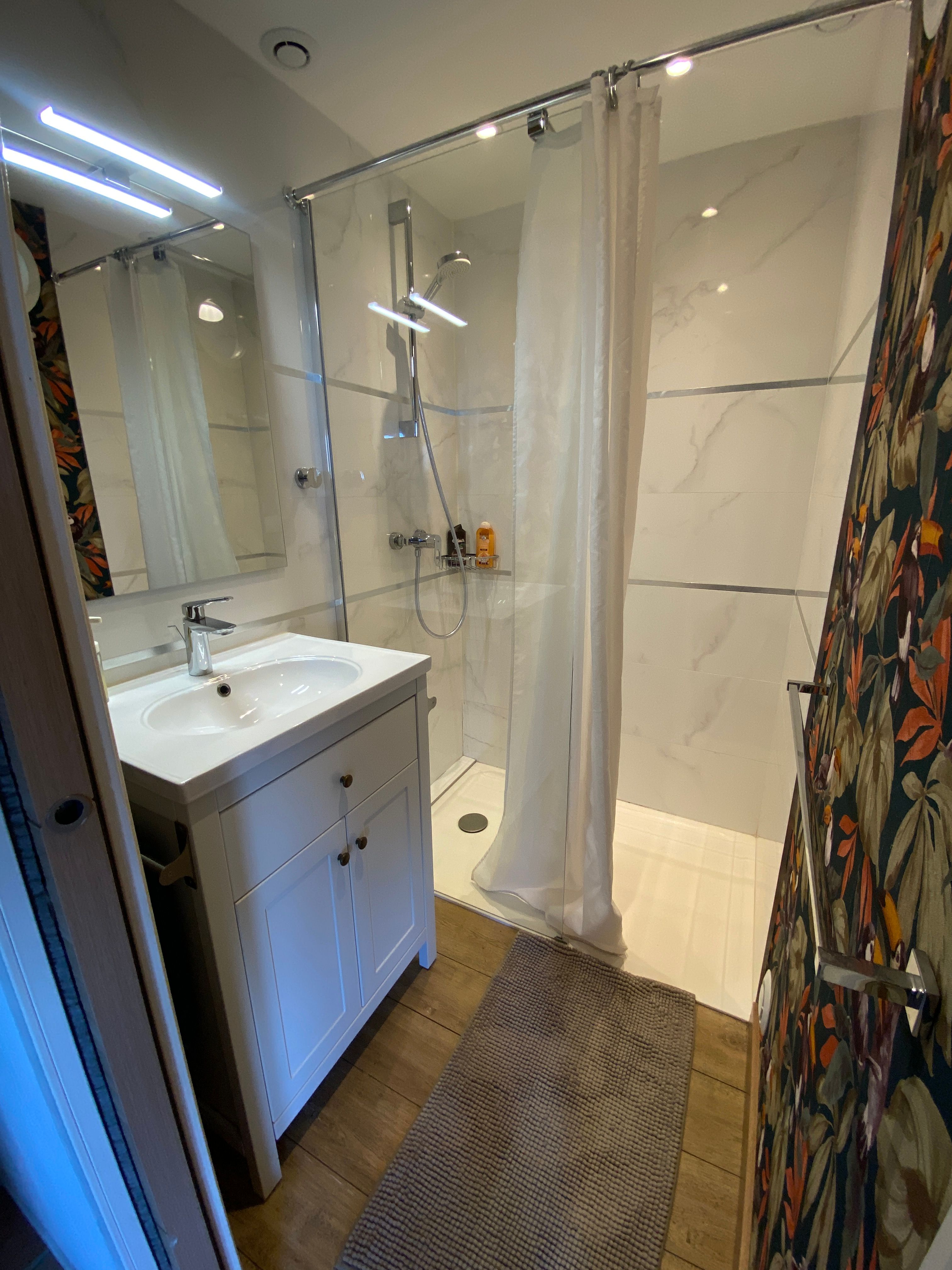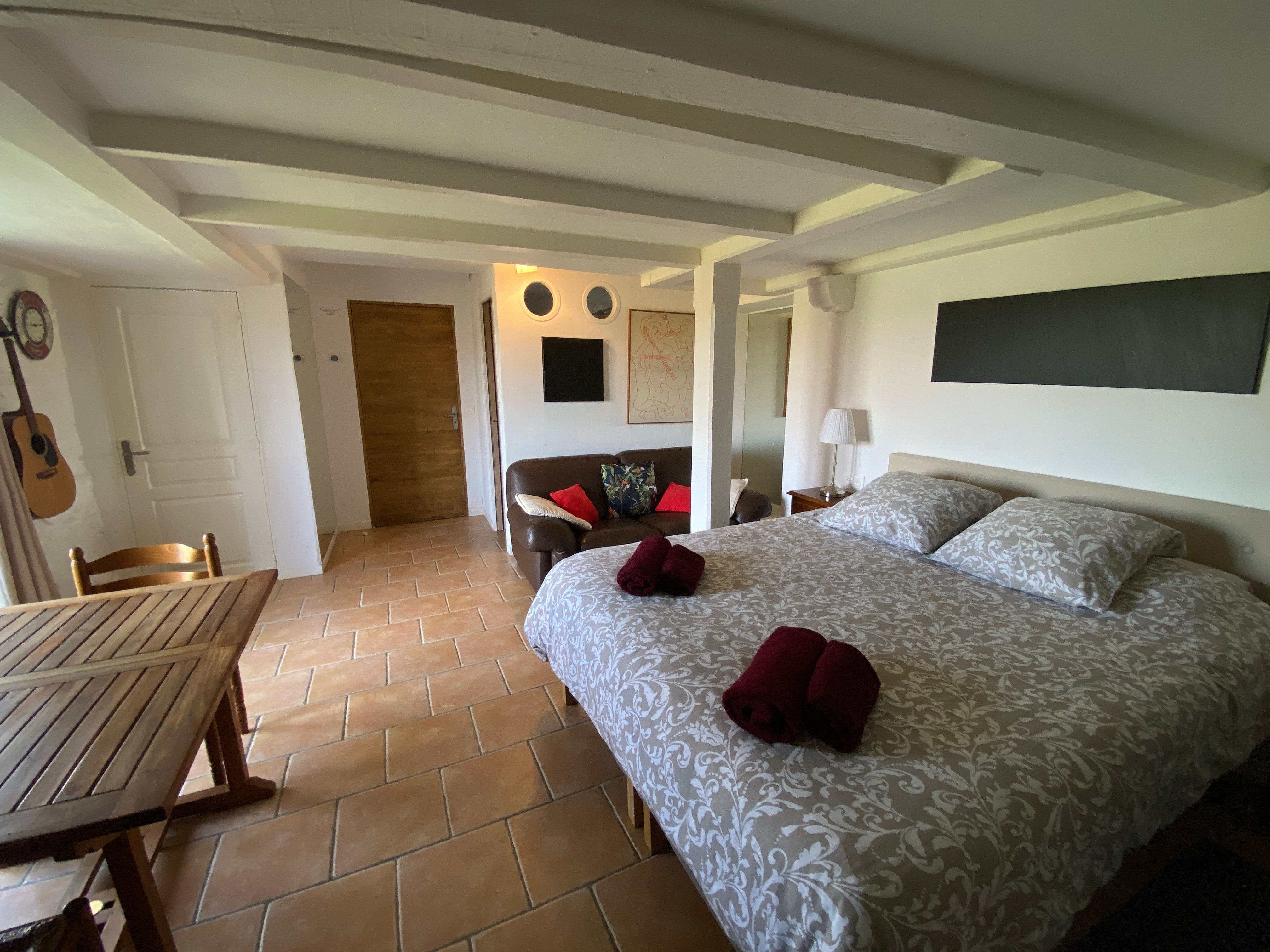 Lit double, bureau, canapé sur 25 m², salle de bain séparée privée