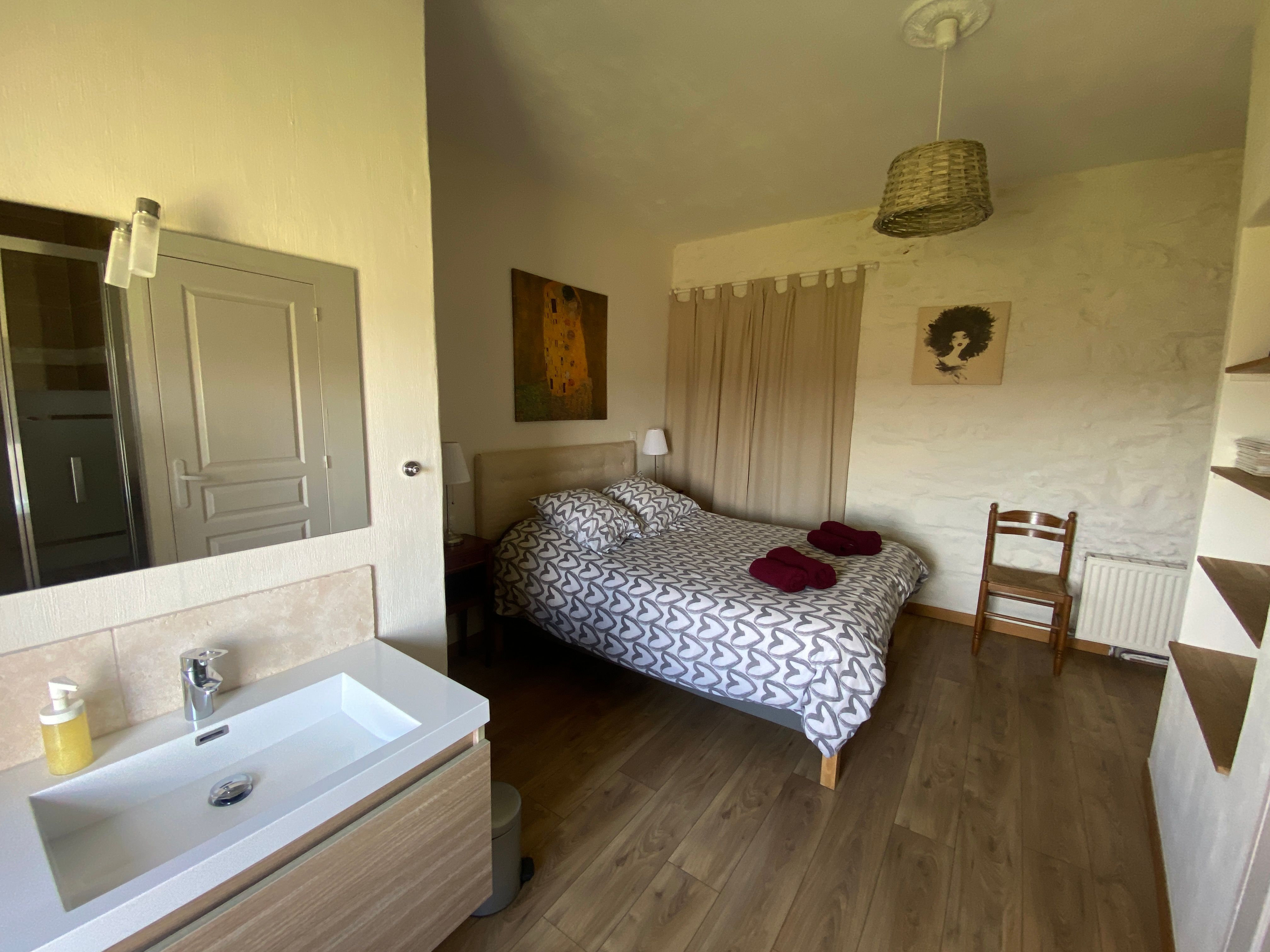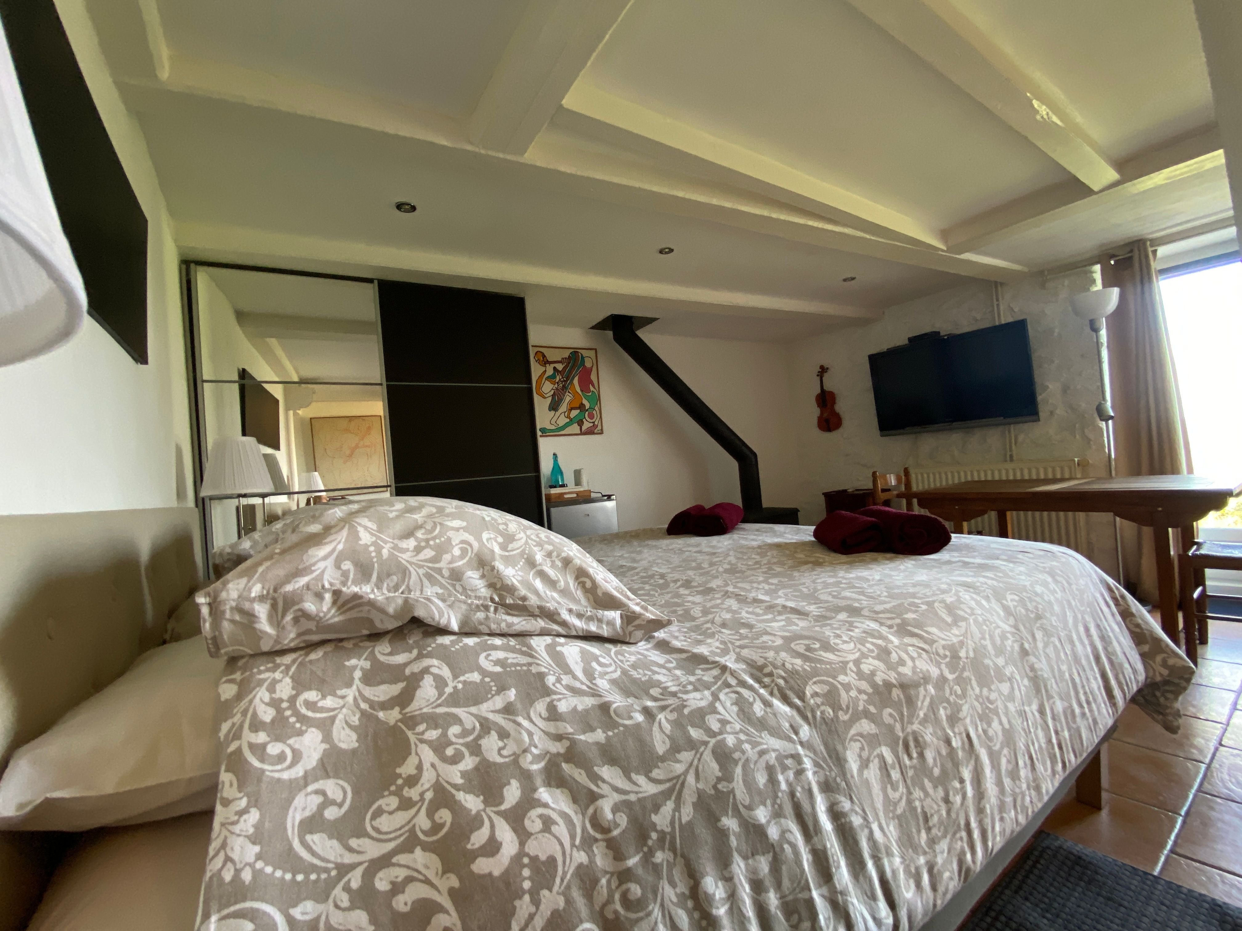 Chambre entièrement rénovée à neuf en 2017, bien isolée, chauffage central, un vrai nid douillet! Vue exceptionnelle. Salon privé attenant soit 32 m² de tranquillité avec la chambre.
