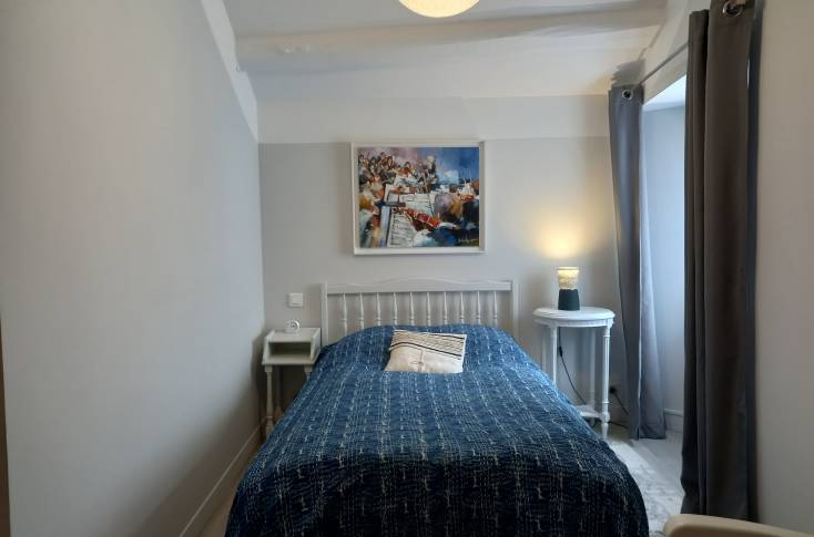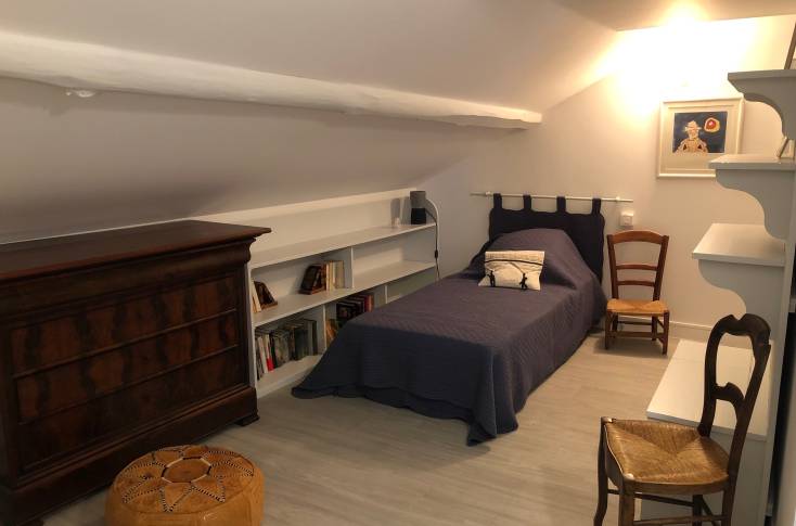 A l'étage, la deuxième chambre avec un lit de 120 cm et un lit de 90 cm.