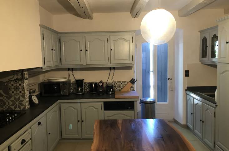 Une cuisine équipée (frigo, lave-vaisselle, micro-ondes, four, plaque de cuisson à gaz, cafetière, Nespresso, grille-pain, mixeur…)