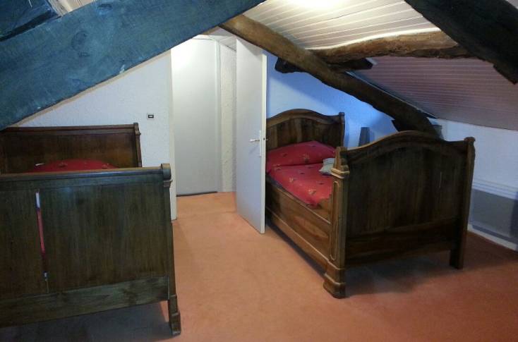 Au rdc : séjour (cheminée, 1 canapé, 2 fauteuils) avec coin-cuisine (éléments intégrés, MO, LV, LL), 1 ch (1 lit 140), 1 ch (1 lit 90), salle d'eau, wc.