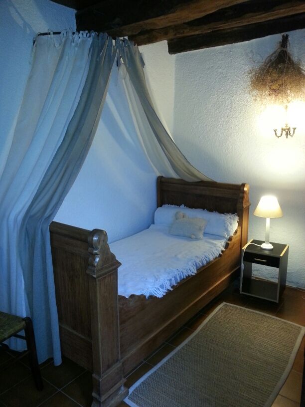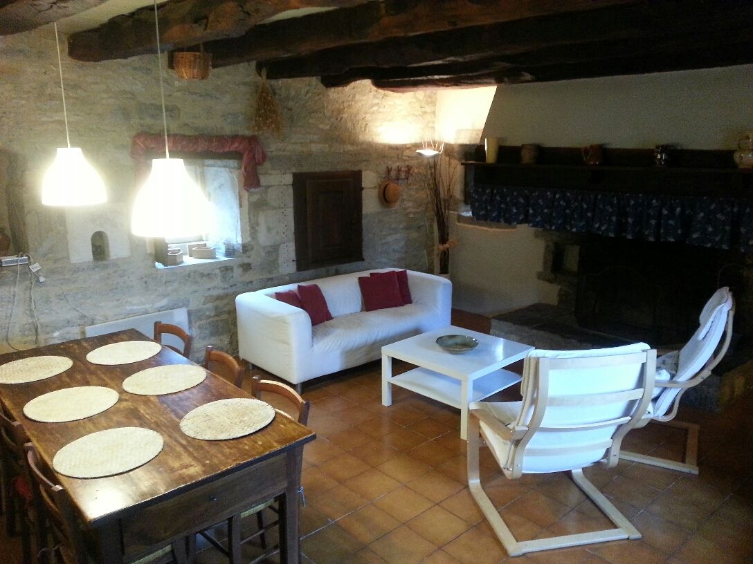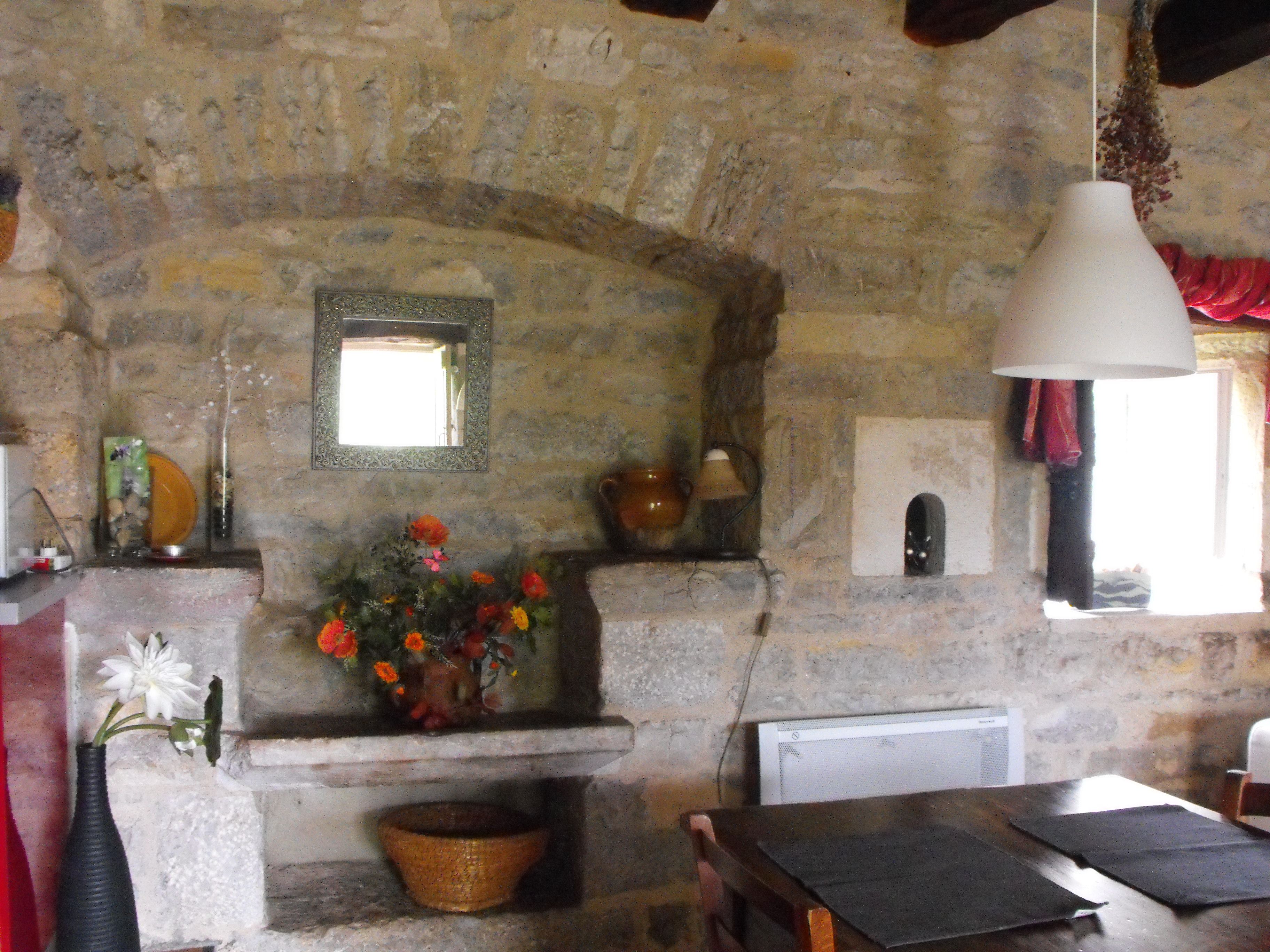 Le hameau de La Veyrie vous accueille dans ce gîte indépendant restauré. L'ancienne cheminée, les murs en pierres apparentes et le mobilier ancien sur fond de couleurs de vacances font le charme de cet endroit, dominant la vallée de l'Aveyron. Dans un hameau, gîte indépendant. Au rdc : séjour (cheminée, 1 canapé, 2 fauteuils) avec coin-cuisine (éléments intégrés, MO, LV, LL), 1 ch (1 lit 140), 1 ch (1 lit 90), salle d'eau, wc. A l'étage 1 ch mansardée (2x120). Jardin privé clos (500 m2), barbecue, salon de jardin, 5 relax de jardin. Chauffage électrique.