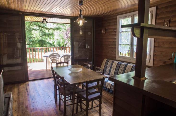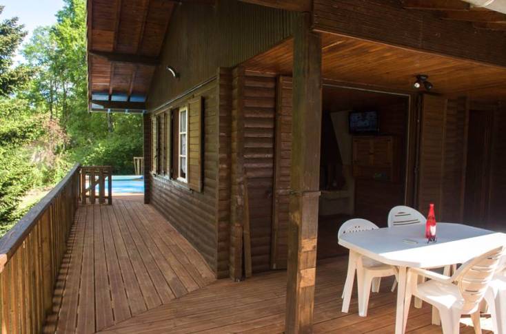 Chalet de 65 m2 à proximité de St Antonin situé dans un parc ombragé de 3500 m² en bordure de rivière. Le chalet comprend 2 chambre, pour 4 personnes et 1 salle de bain.