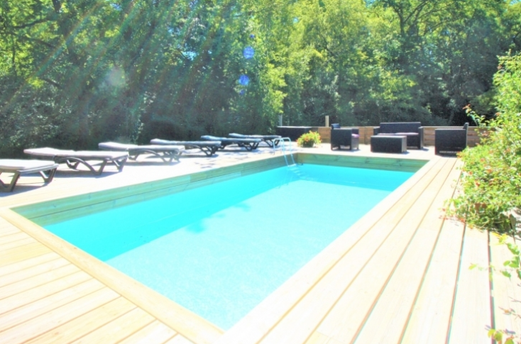 Séjour Compact Mais Confortable Séjour compact mais confortable, avec beaucoup d'espace extérieur et une piscine chauffée. A l'abri d'une canopée de noisetiers, l'ensemble d'environ 600 m² entièrement en bois, orienté plein sud, bénéficie d'un double vitrage et d'une puissance frigorifique réversible de 6 000 W.