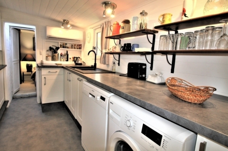 Cuisine entièrement équipée avec plan de travail de bonne taille, 2 plaques à induction, four ventilé, four micro-ondes, lave-vaisselle, grand réfrigérateur/congélateur, grille-pain/sandwich, bouilloire électrique, cafetière, robot ménager et une bonne gamme de vaisselle, couverts et ustensiles , comprenant un bloc à couteaux et un aiguiseur.