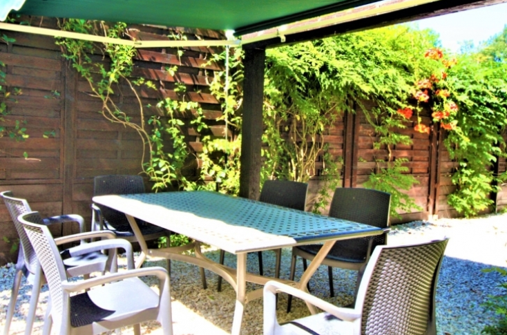 Charmant terrain de 1400 m² au total, avec des espaces ombragés et en plein soleil.