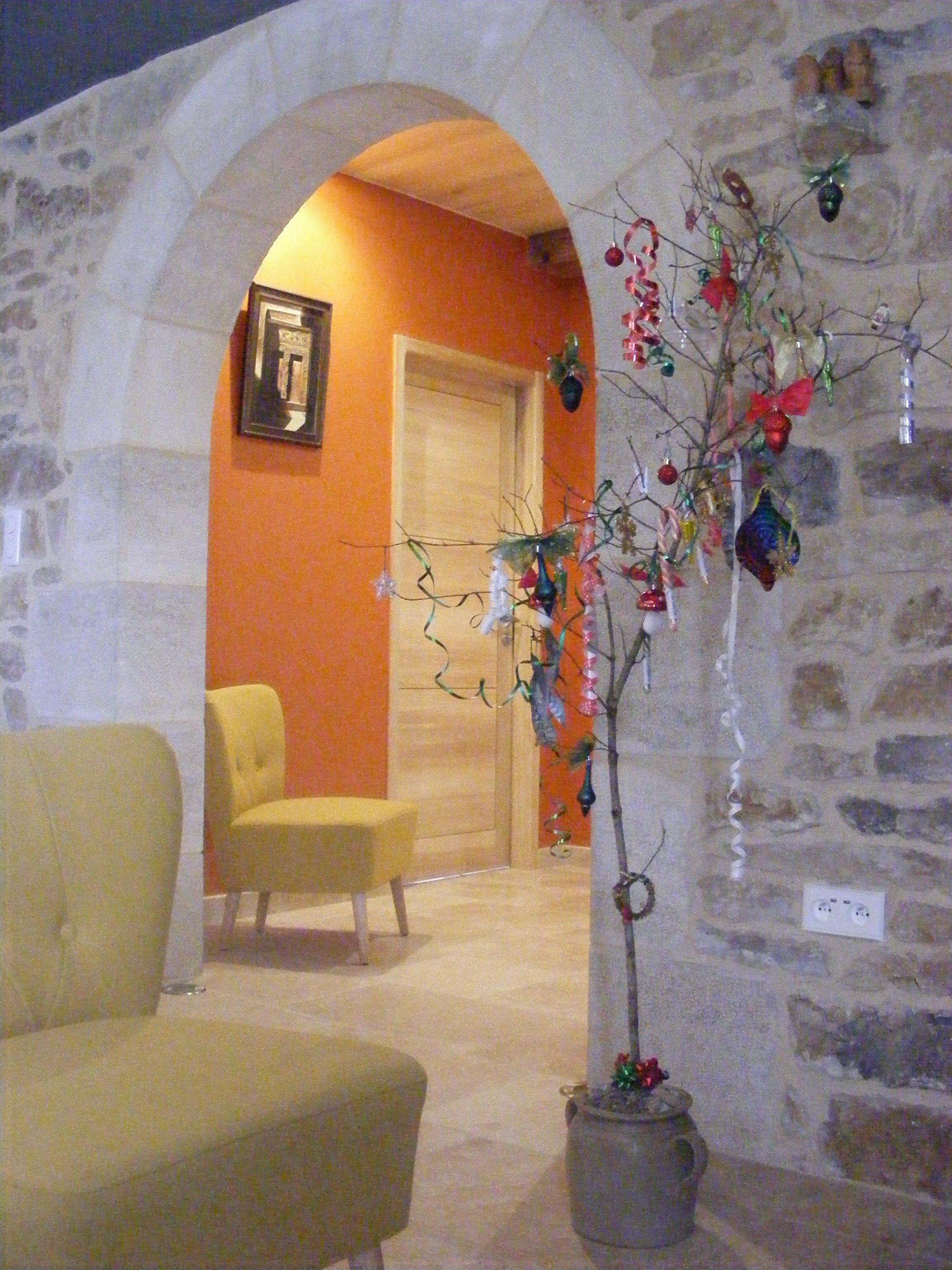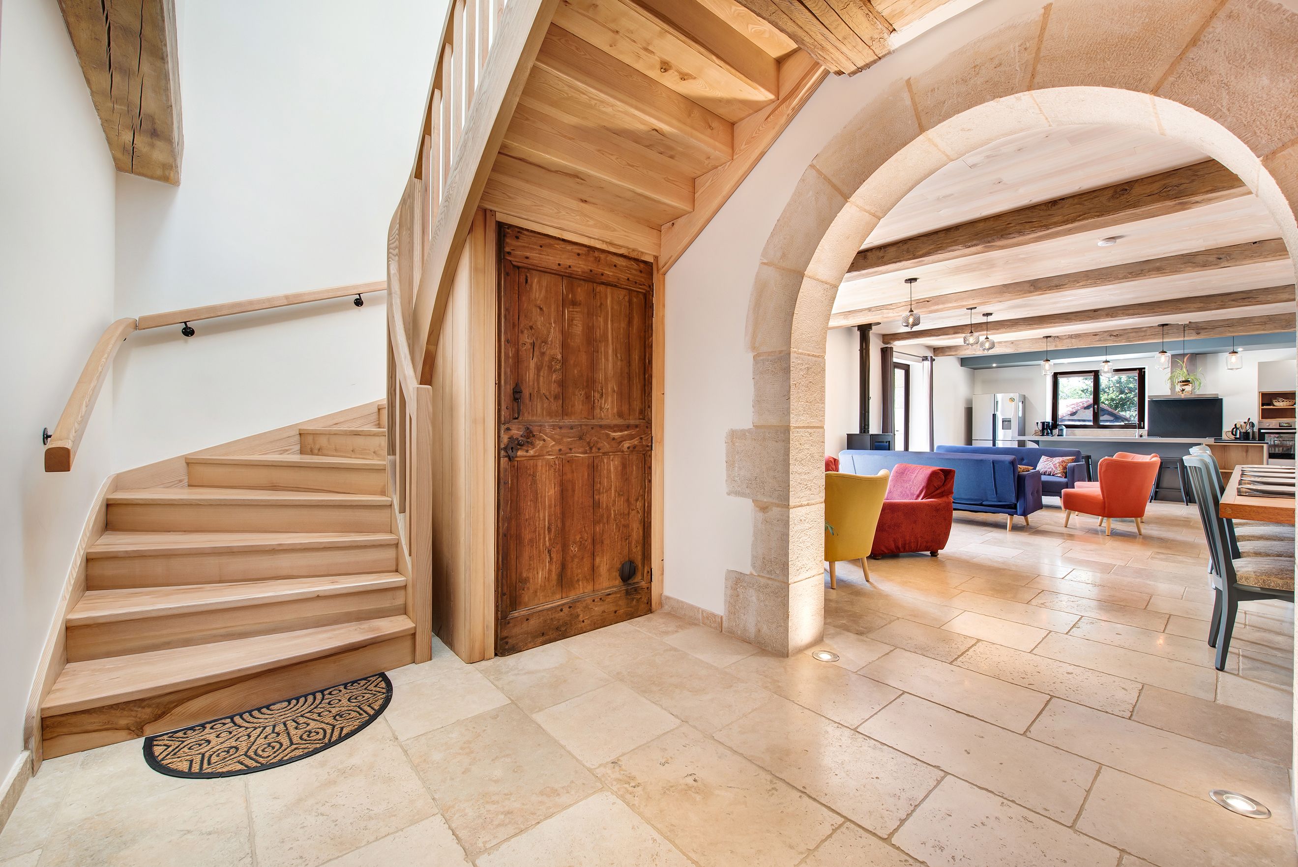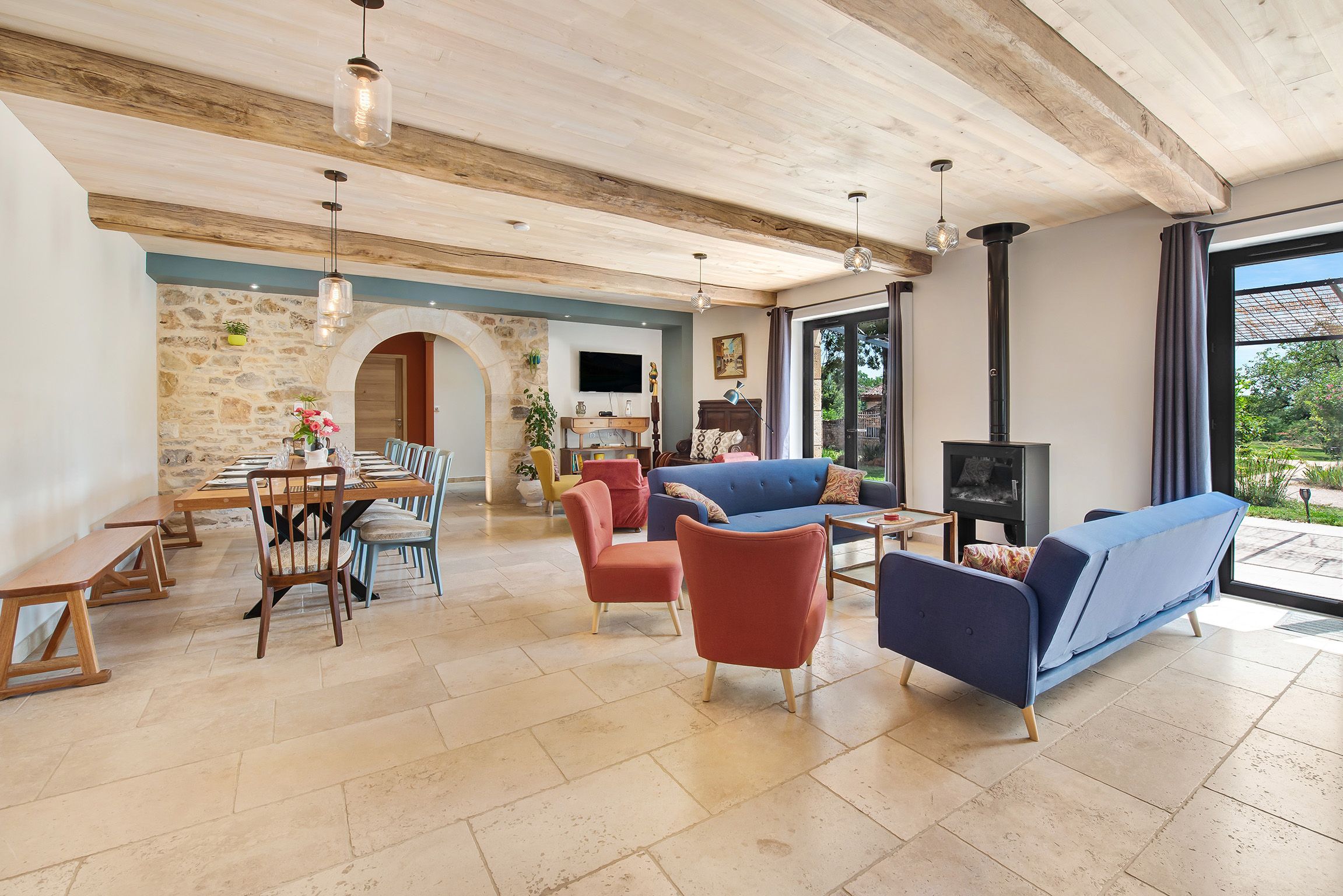 Dans la première bâtisse, vous profiterez de cette belle maison en pierre entièrement rénovée avec 7 chambres et 5 dalles d'eau.
