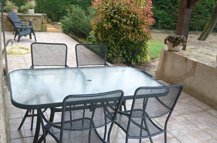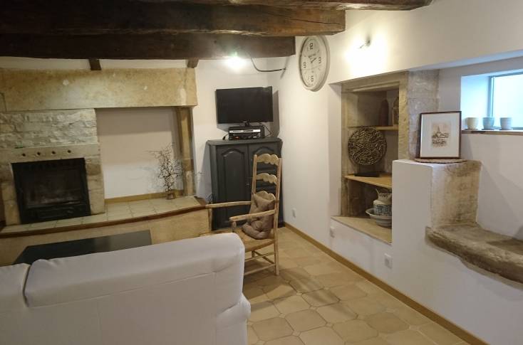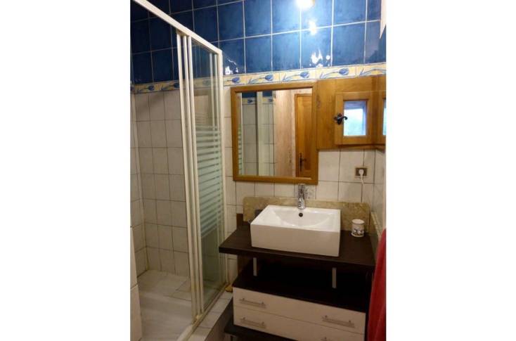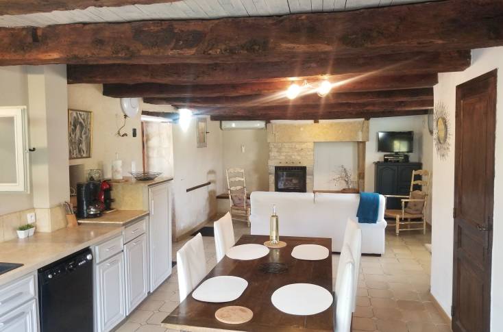 Au rdc : séjour avec coin-cuisine (Micro ondes, lave-vaisselle, lave-linge, sèche-linge) et salon (canapé, cheminée insert). Au 1er : 1 chambre (1 lit 160), 1 chambre (2 lits en 0,90, jumelables en 1.80) d'eau, WC. Climatisation réversible. Terrasse couverte, salon de jardin, portique, sentiers de randonnée, barbecue. Abri voiture.