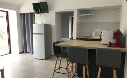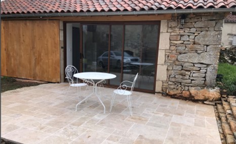 Petite grange en pierre rénovée de 45m2 avec terrasse pour 2 personnes.