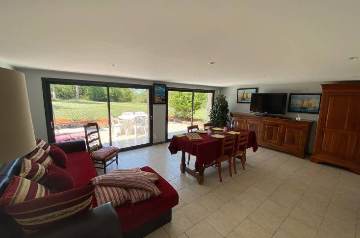 BarbecuePiscinePiscine plein airPiscine collectiveSalle de sportSalonTerrasseSalon de jardinJardinJardin communPlain-PiedParkingParking privéAccès Internet WifiLits faits à l'arrivéeMénage avec supplément -