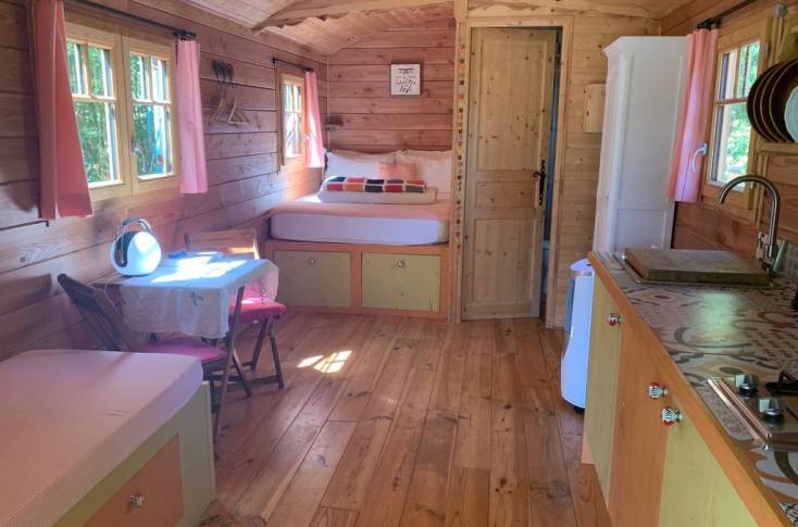 Trois belles roulottes en bois et sur mesure offrant un hébergement pour les couples bien que l'ajout d'un «lit de jour» dans chaque roulotte permette d'accueillir une troisième personne. Romantique et enchanteur; nos roulottes ont tout ce dont vous pourriez avoir besoin pour vos vacances. Chacun a été soigneusement fini et comprend une terrasse privée pour les repas à l'extérieur avec l'utilisation d'un barbecue à charbon Webber. À l'intérieur, vous trouverez une cuisine compacte et bien équipée ainsi qu'une salle de douche avec WC à chasse d'eau. Il y a un lit confortable de style roulotte traditionnel avec un espace de rangement en dessous. Toutes les Roulottes disposent d'unités de climatisation et de chauffage électrique si nécessaire et tous les clients ont accès à la piscine d'eau salée pendant les mois d'été. Tous les draps et serviettes fournis. Peut accueillir 2 adultes et 1 enfant de moins de 10 ans.