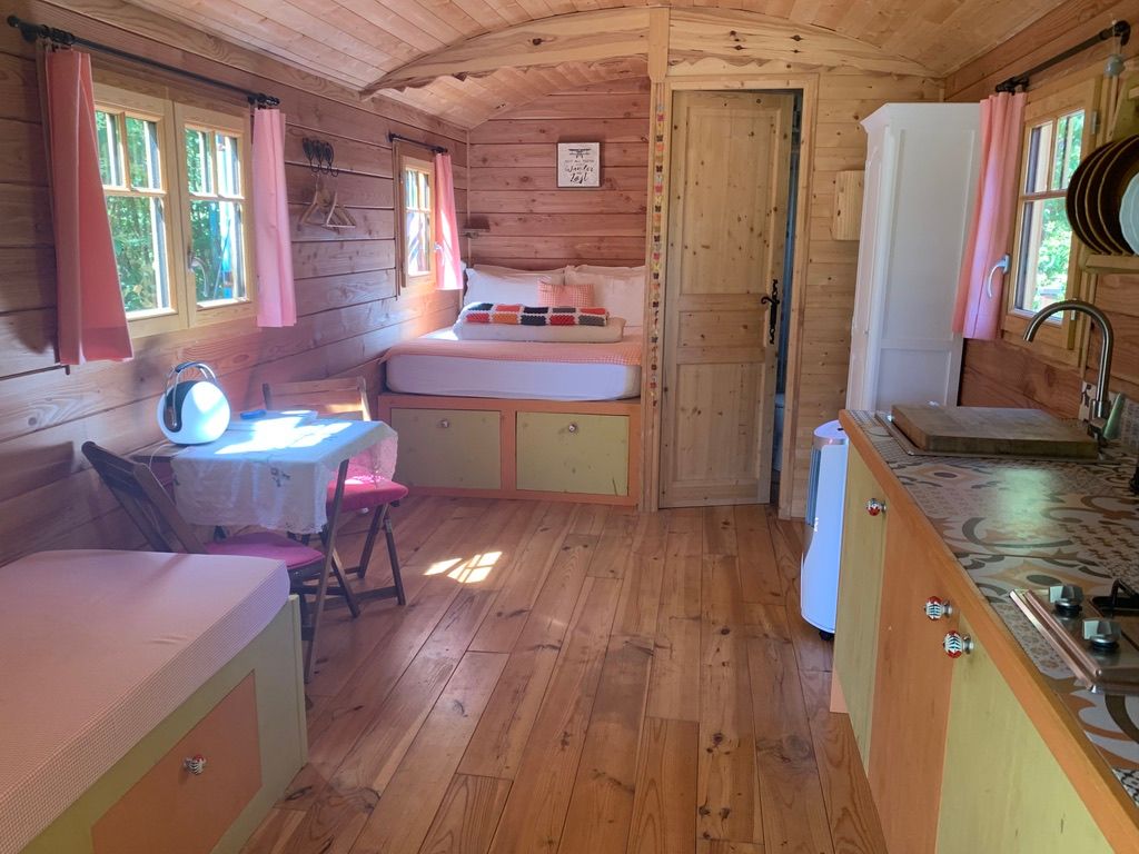 Trois belles roulottes en bois et sur mesure offrant un hébergement pour les couples bien que l'ajout d'un «lit de jour» dans chaque roulotte permette d'accueillir une troisième personne. Romantique et enchanteur; nos roulottes ont tout ce dont vous pourriez avoir besoin pour vos vacances. Chacun a été soigneusement fini et comprend une terrasse privée pour les repas à l'extérieur avec l'utilisation d'un barbecue à charbon Webber. À l'intérieur, vous trouverez une cuisine compacte et bien équipée ainsi qu'une salle de douche avec WC à chasse d'eau. Il y a un lit confortable de style roulotte traditionnel avec un espace de rangement en dessous. Toutes les Roulottes disposent d'unités de climatisation et de chauffage électrique si nécessaire et tous les clients ont accès à la piscine d'eau salée pendant les mois d'été. Tous les draps et serviettes fournis. Peut accueillir 2 adultes et 1 enfant de moins de 10 ans.