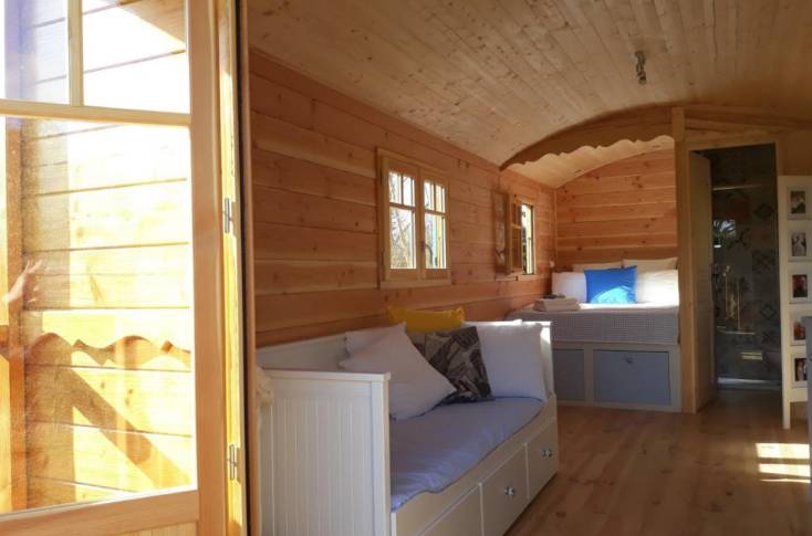 Trois belles roulottes en bois et sur mesure offrant un hébergement pour les couples bien que l'ajout d'un «lit de jour» dans chaque roulotte permette d'accueillir une troisième personne. Romantique et enchanteur; nos roulottes ont tout ce dont vous pourriez avoir besoin pour vos vacances. Chacun a été soigneusement fini et comprend une terrasse privée pour les repas à l'extérieur avec l'utilisation d'un barbecue à charbon Webber. À l'intérieur, vous trouverez une cuisine compacte et bien équipée ainsi qu'une salle de douche avec WC à chasse d'eau. Il y a un lit confortable de style roulotte traditionnel avec un espace de rangement en dessous. Toutes les Roulottes disposent d'unités de climatisation et de chauffage électrique si nécessaire et tous les clients ont accès à la piscine d'eau salée pendant les mois d'été. Tous les draps et serviettes fournis. Peut accueillir 2 adultes et 1 enfant de moins de 10 ans.