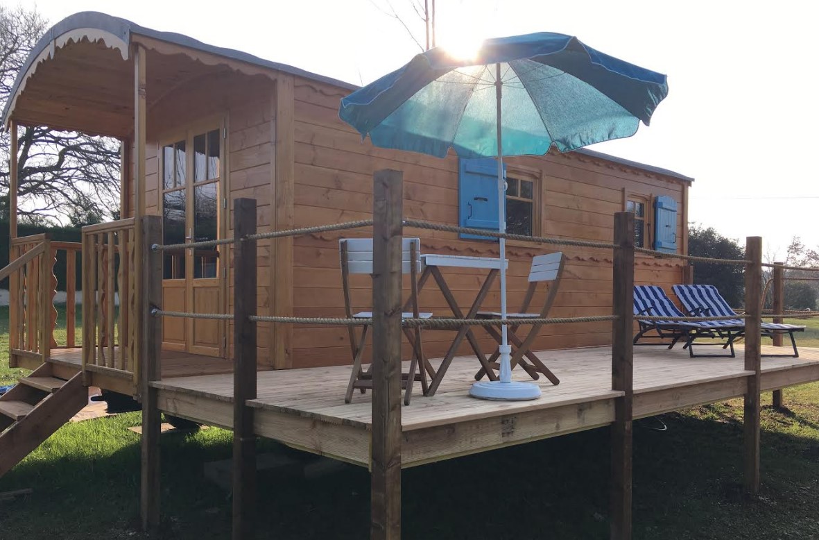 Trois belles roulottes en bois et sur mesure offrant un hébergement pour les couples bien que l'ajout d'un «lit de jour» dans chaque roulotte permette d'accueillir une troisième personne. Romantique et enchanteur; nos roulottes ont tout ce dont vous pourriez avoir besoin pour vos vacances. Chacun a été soigneusement fini et comprend une terrasse privée pour les repas à l'extérieur avec l'utilisation d'un barbecue à charbon Webber. À l'intérieur, vous trouverez une cuisine compacte et bien équipée ainsi qu'une salle de douche avec WC à chasse d'eau. Il y a un lit confortable de style roulotte traditionnel avec un espace de rangement en dessous. Toutes les Roulottes disposent d'unités de climatisation et de chauffage électrique si nécessaire et tous les clients ont accès à la piscine d'eau salée pendant les mois d'été. Tous les draps et serviettes fournis. Peut accueillir 2 adultes et 1 enfant de moins de 10 ans.